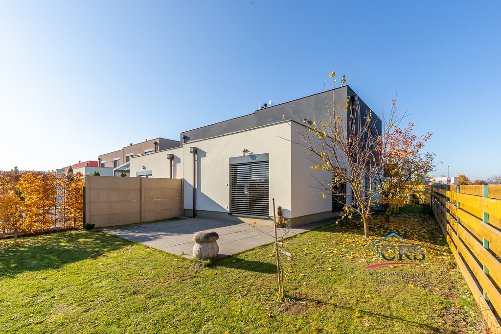 Moderní novostavba řadového rodinného domu 4+kk s terasou, zahradou a parkováním.