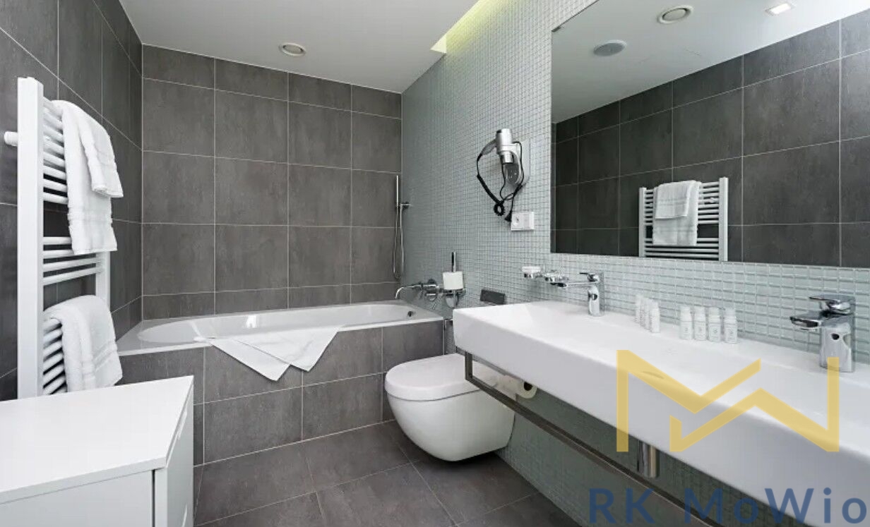 Bytová jednotka nabízí vstupní chodbu, vzdušný obývací pokoj s kuchyňským koutem a jídelním prostorem, ložnici, koupelnu (s vanou, umyvadlem a toaletou) a samostatnou toaletu. Vybavení bytu: kuchyňská linka včetně lednice s mrazákem, sklokeramické varné desky, digestoře, elektrické a mikrovlnné trouby a myčky nádobí; vestavěné skříně, pračka a sušička, TV, internet, dřevěné podlahy a dlažba.