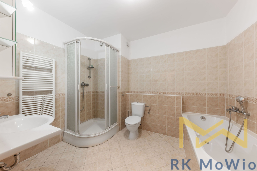 Půdorys bytové jednotky disponuje vstupní chodbou, vzdušným obývacím pokojem s kuchyňským koutem a jídelním prostorem, hlavní ložnicí, 2 ložnicemi, 1 koupelnou a balkónem. Vybavení bytu: kuchyňská linka včetně lednice s mrazákem, sklokeramické varné desky, digestoře, myčky, elektrické a mikrovlnné trouby; vestavěné skříně, přípojka pro pračku a sušičku, příprava pro vysokorychlostní internet, dřevěné podlahy a dlažba. K bytu lze pronajmout parkovací garážové stání č. 45 za extra příplatek 3.000,- Kč/měsíc. Byt se pronajímá nezařízený.