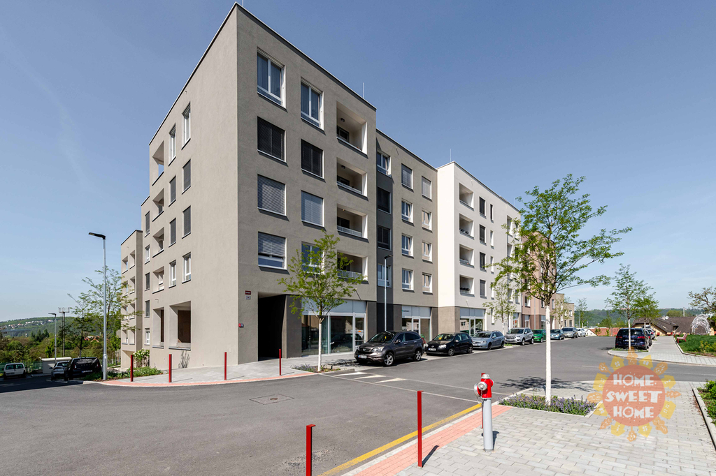 Modřany, moderní byt 3+kk k pronájmu, předzahrádka, terasa, garážové stání, sklep, ul. Kolmanova