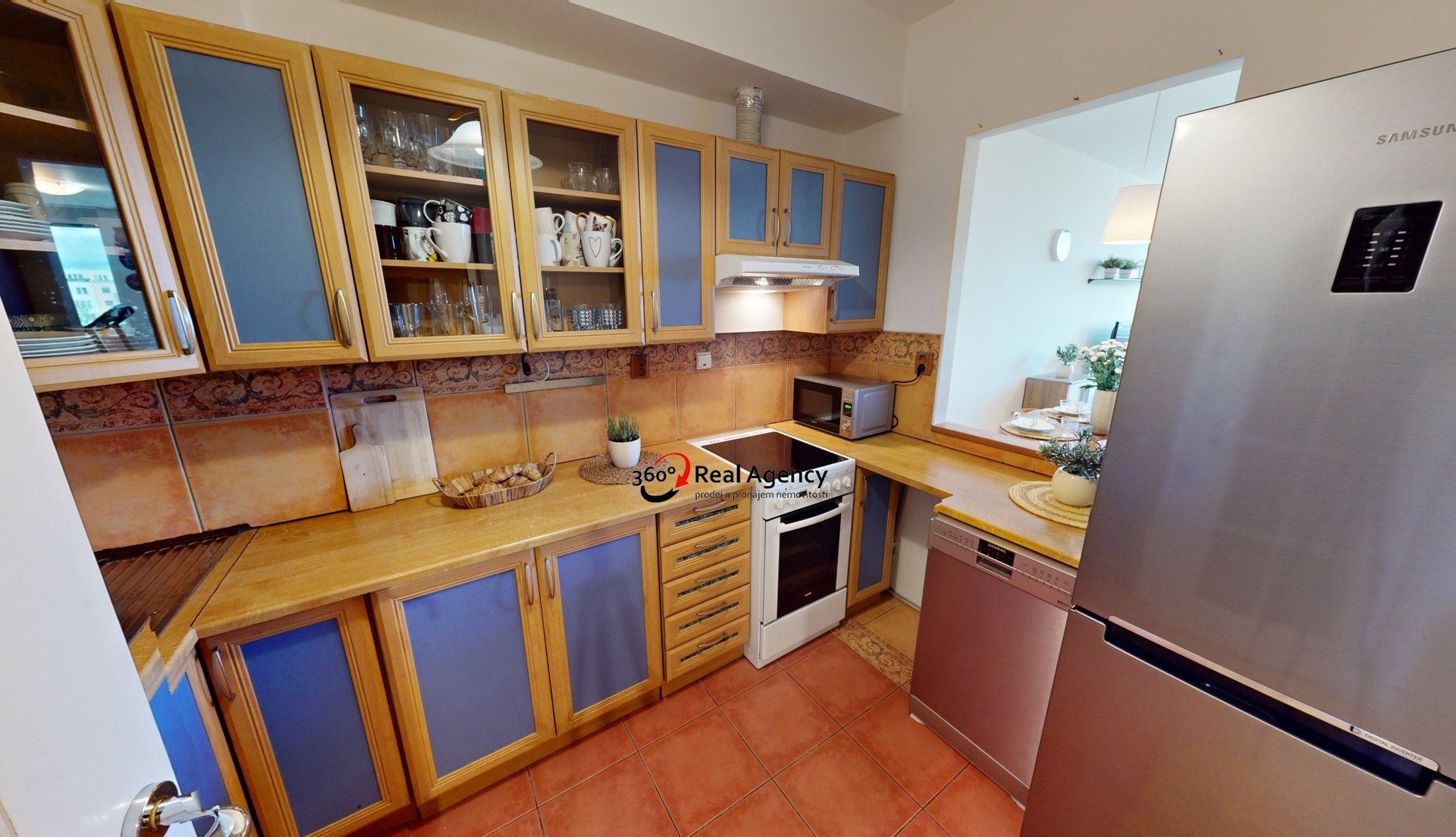 Kuchyně (6,3 m²) je oddělena, přesto však prakticky propojena s obývacím pokojem, který tvoří dominantu bytu o velikosti 30 m². Prostor nabízí dostatek místa jak pro relaxaci, tak pro pracovní kout. Z obývací části se přes dřevěné prosklené dvoukřídlé dveře vstupuje do ložnice, která zajišťuje dostatek soukromí i klidného zázemí pro odpočinek.