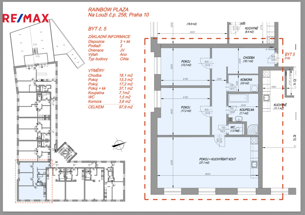 | Dispozice/podlahová plocha: | 3+kk/97 m² |