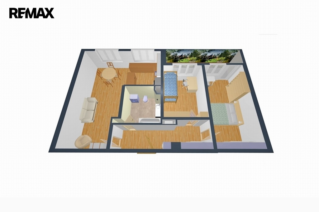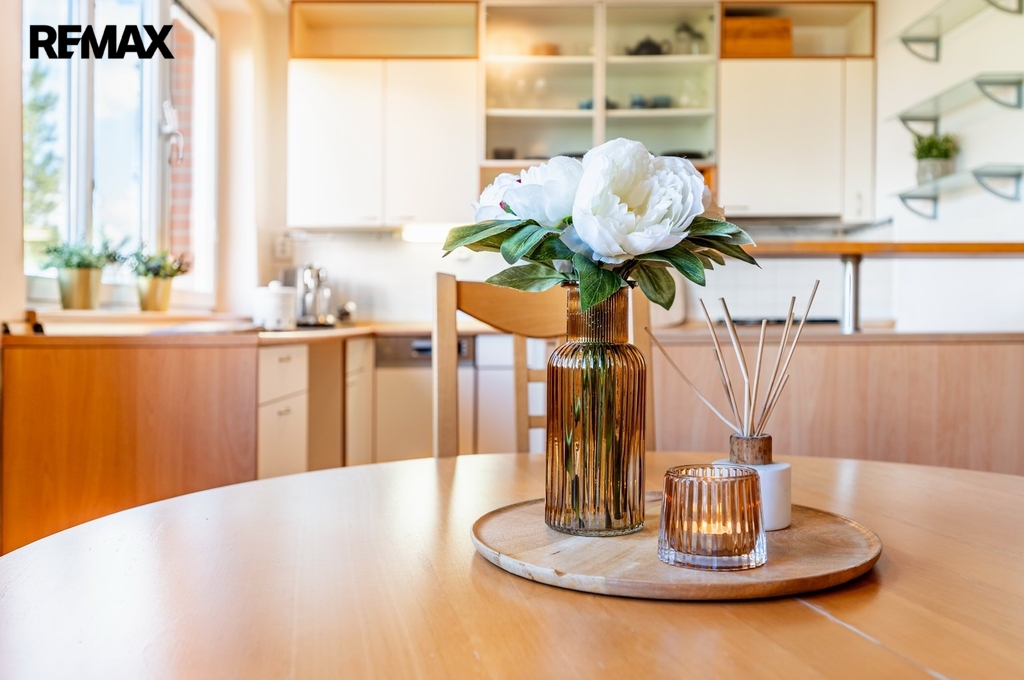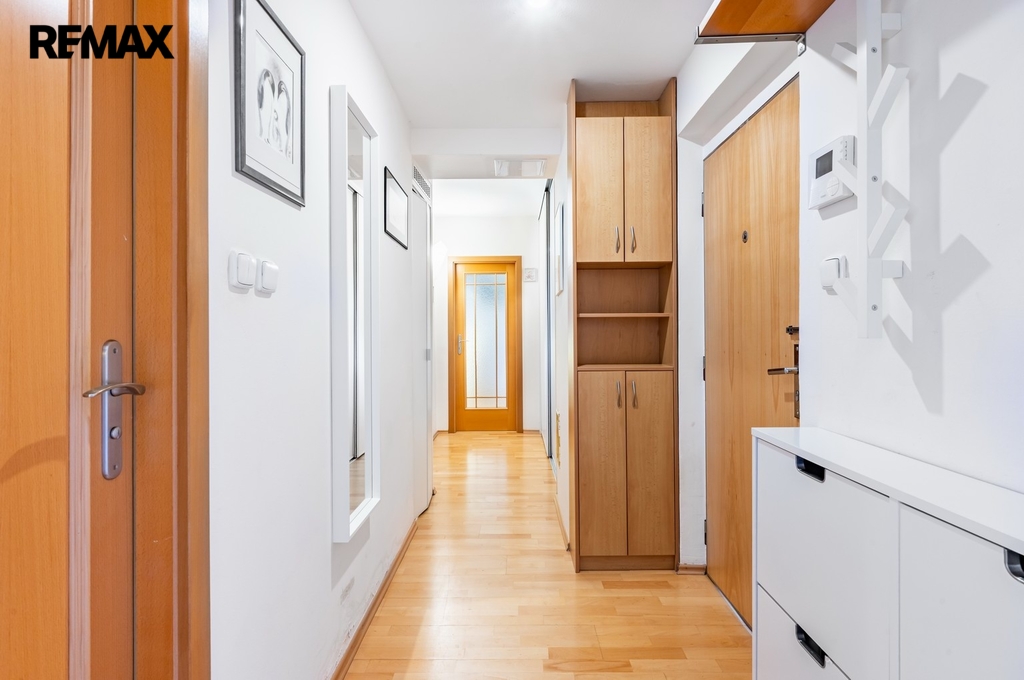 Dispozičně skvěle řešený byt tvoří prostorný obývací pokoj s plně vybaveným kuchyňským koutem a jídelní částí (30,6 m²), ložnice se vstupem na lodžii (16,2 m2), neprůchozí pokoj vhodný jako pracovna, či dětský pokoj (11,4 m2), koupelna s vanou a toaletou (4,5 m2) a vstupní chodba s množstvím úložných prostor (9,5 m2). Z lodžie i oken všech pokojů se otevírá uklidňující výhled do okolní zeleně, kde je naprostý klid a harmonie.