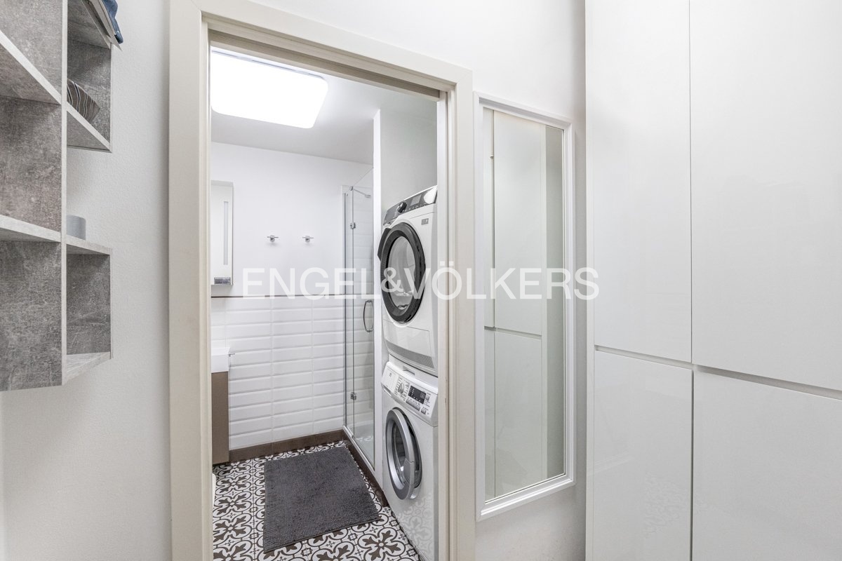 Vybavení: Stylově zařízeno. Kuchyň s myčkou, lednicí, parní troubou a drtičem odpadu. Dvě koupelny (jedna z koupelen je vybavena pračkou a sušičkou) a dvě šatny