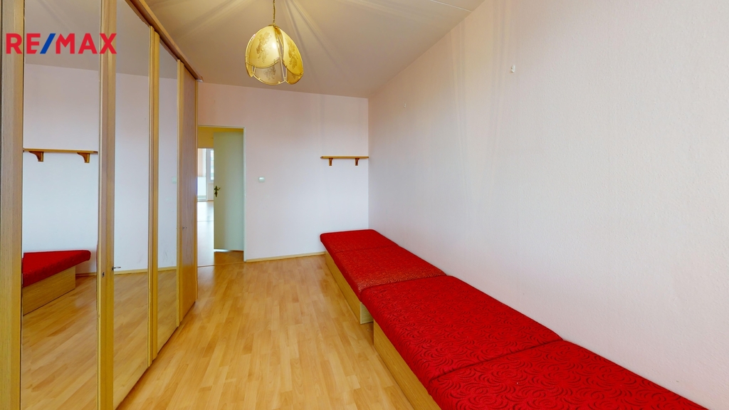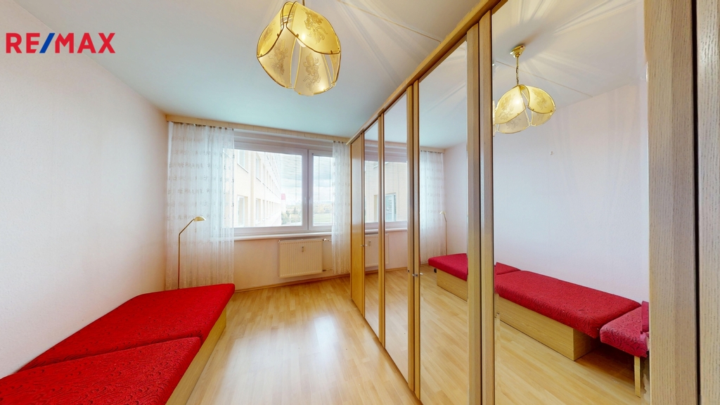 Dispozice je: obývací pokoj s východem do zasklené lodžie + kuchyňský kout, 2 samostatné pokoje, koupelna s vanou, toaleta, šatna, chodba s vestavěnými skříněmi.