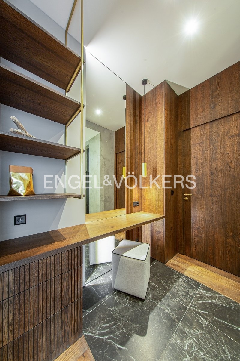 Byt se nachází ve 2. nadzemním podlaží elegantního nárožního činžovního domu s výtahem. Dispozice nabízí prostorný obývací pokoj s kuchyní a jídelnou, dvě ložnice (z nichž jedna má vlastní koupelnu), druhou koupelnu přístupnou z haly, samostatnou toaletu, reprezentativní vstupní halu a světlou zimní zahradu, která může sloužit jako místo k odpočinku či domácí kancelář.