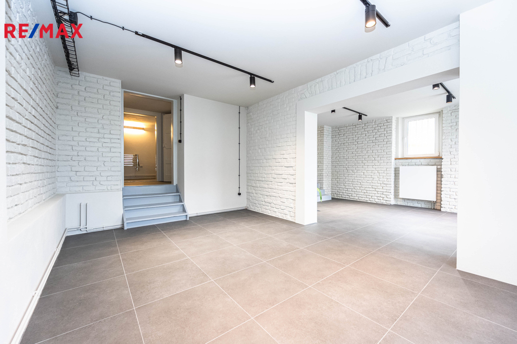 Prostor je vhodný jako kancelář nebo jako showroom či atelier.