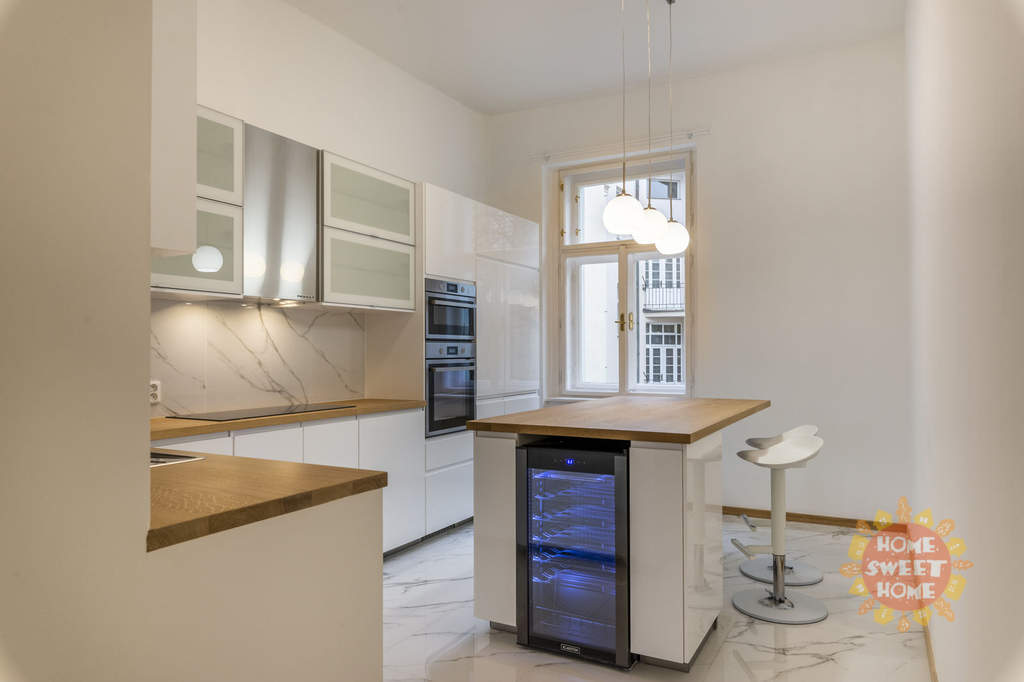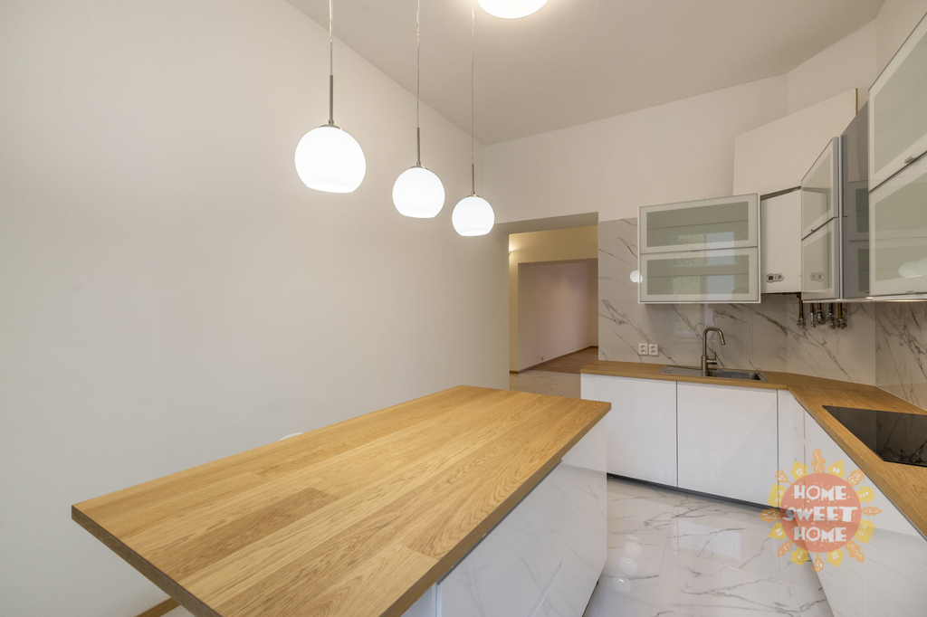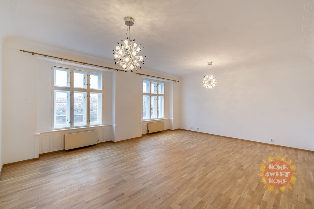 Zcela nově zrekonstruovaný krásný byt 6+1 k pronájmu, nezařízený po kompletní rekonstrukci o celkové výměře 200 m2, který se nalézá ve čtvrtém nadzemním patře nádherného secesního domu s výtahem na Rašínově nábřeží č. 58, který patří k jedněm z nejkrásnějším domů na nábřeží. V bytě se nachází prostorná vstupní hala s vchody do jednotlivých neprůchozích pokojů, plně zařízená kuchyň (lednice, mrazák, varná deska, digestoř, trouba, myčka na nádobí, vinotéka a pračka), dvě koupelny vybavené (v jedné rohová vana a WC, druhá je se sprchovým koutem). Další WC samostatné zvlášť. Podlahy jsou pokryty novou dřevěnou podlahou a velkoformátovou dlažbou. Nájemníci mají k dispozici vlastní bazén o velikosti 6 x 11 m s celoročním provozem, vířivou lázeň, saunu a posilovnu v prostorách domu. V suterénu je k dispozici kulečník, šipky a malý bar pro příležitostné použití. V domě je 24 hodinová ostraha, která se stará o klidné a nerušené bydlení v domě, společné prostory jsou monitorované kamerou. V přízemí domu se nachází restaurace "U Kalendů" s výbornou kuchyní a také pekárna, kde mají každý den výborné čerstvé a křupavé pečivo. Možnost pronájmu garážového stání v nedalekých garážích za 5.000 Kč/měsíc. Úžasná lokalita v centru Prahy, výborná dostupnost do všech pražských částí, kompletní občanská vybavenost.