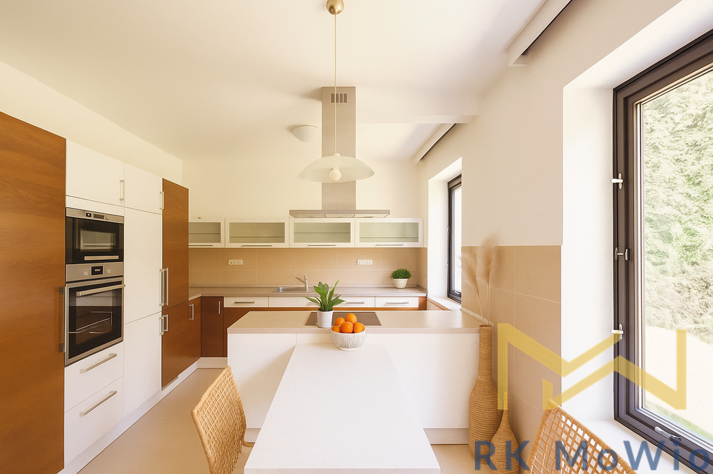 Půdorys domu disponuje vstupní halou, prostorným obývacím pokojem s krbem a jídelním prostorem, kuchyní, dvěma ložnicemi a 2 koupelnami. V prvním patře domu se nachází hlavní ložnice se soukromou koupelnou, další dvě ložnice, jedna s průchozí šatnou, koupelna a komora. Sklepní prostory nabízí prádelnu, vinný sklípek a pokoj, možný využít jako posilovnu nebo sklad. Vybavení bytu: kuchyňská linka (včetně lednice s mrazákem, sklokeramické varné desky, digestoře, myčky a elektrické trouby), vestavěné skříně, pračka a sušička, příprava pro vysokorychlostní internet, dřevěné podlahy a dlažba.