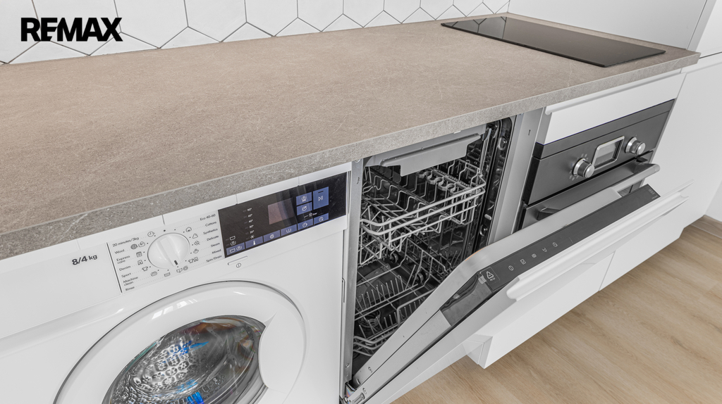 Jednotka se skládá ze vstupní předsíně, obývacího pokoje s kuchyňskou linkou s integrovanými spotřebiči a koupelny s toaletou a sprchovým koutem. V obývacím pokoji je k dispozici po celé jeho šíři prostorná kuchyňská linka s dostatkem úložných prostor a všemi spotřebiči, které nájemce k pohodlnému životu potřebuje, tj. lednice s mrazákem, myčka nádobí, pračka se sušičkou, varná deska a v neposlední řadě kombinovaná elektrická trouba s mikrovlnnou. Koupelna je vybavena závěsným WC, umyvadlem se skříňkami a sprchovým koutem s termostatickou sprchovou baterií. Byt je vytápěn závěsnými přímotopnými konvektory, které pohodlně ovládáte instalovanými termostaty, v koupelně je navíc otopný žebřík. Nájemci je k dispozici prostorná sklepní kóje v suterénu domu.