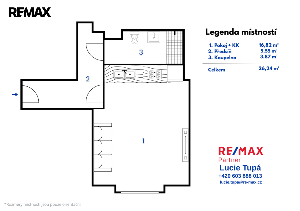 | Dispozice/podlahová plocha: | 1+kk/27 m² |