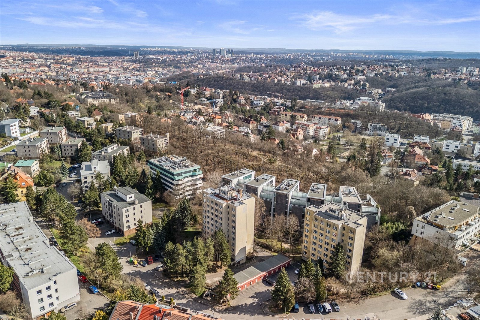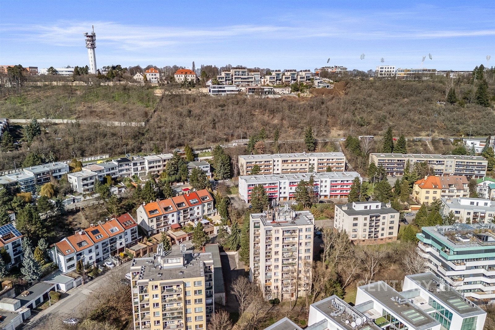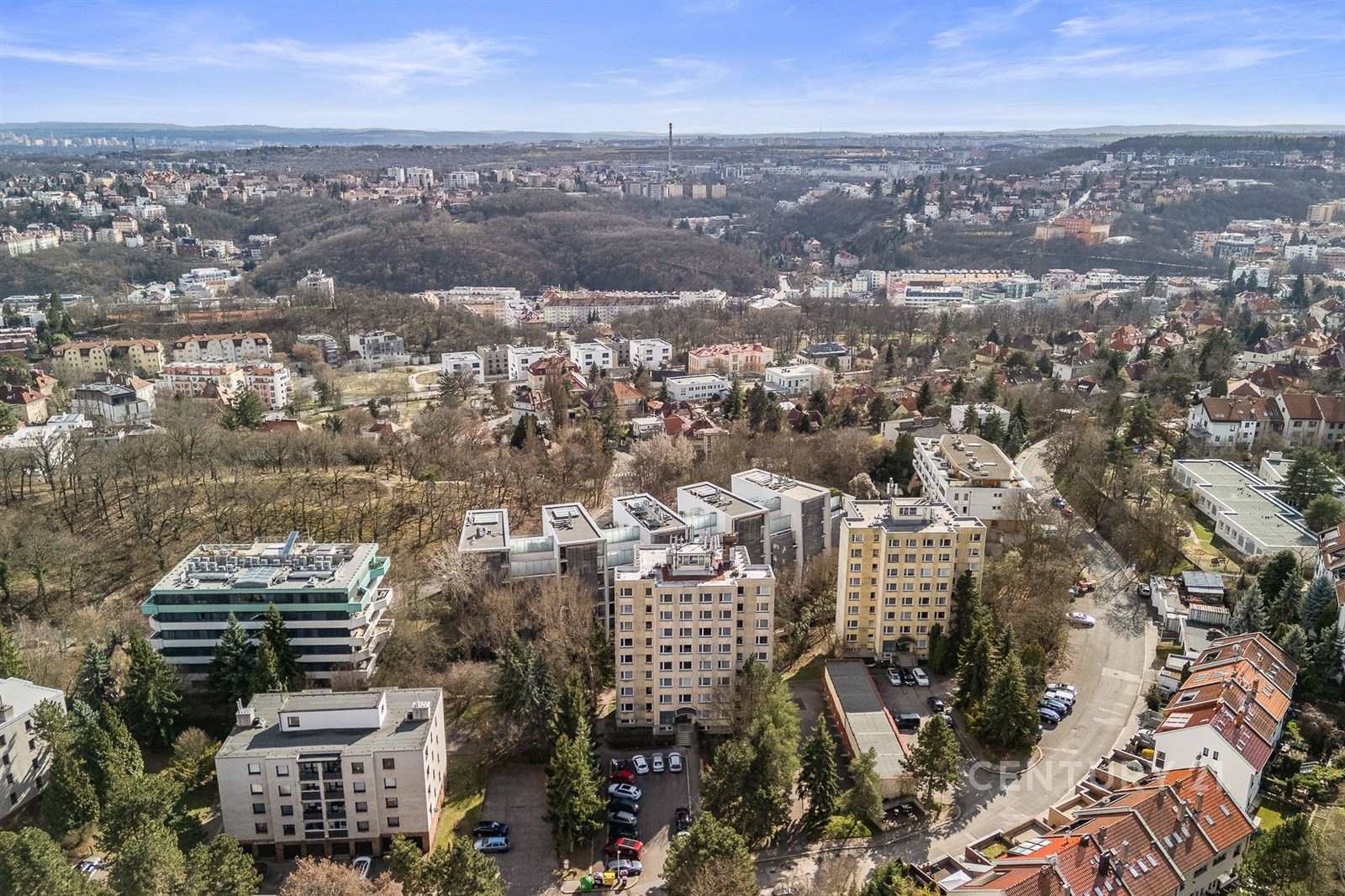 Okolí nabízí ideální rovnováhu mezi zelení a městským komfortem – v docházkové vzdálenosti je park Ladronka i Klamovka se Zahradní restaurací, nechybí oblíbená francouzská pekárna, kavárny ani běžné služby. Výborná dostupnost MHD vás během pár minut dostane na metro B Anděl nebo A Veleslavín, stejně tak rychle se napojíte směrem na letiště nebo k nemocnici Motol.