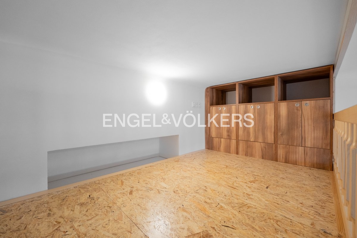 Dispozici bytu tvoří vstupní hala, dvě průchozí místnosti se spacím patrem orientované do ulice, samostatná plně vybavená kuchyň (indukční varná deska, trouba, lednice s mrazákem), koupelna se sprchovým koutem a samostatná toaleta. K dispozici je také praktická technická místnost s úložným prostorem. Součástí vybavení je pračka umístěná v kuchyni.