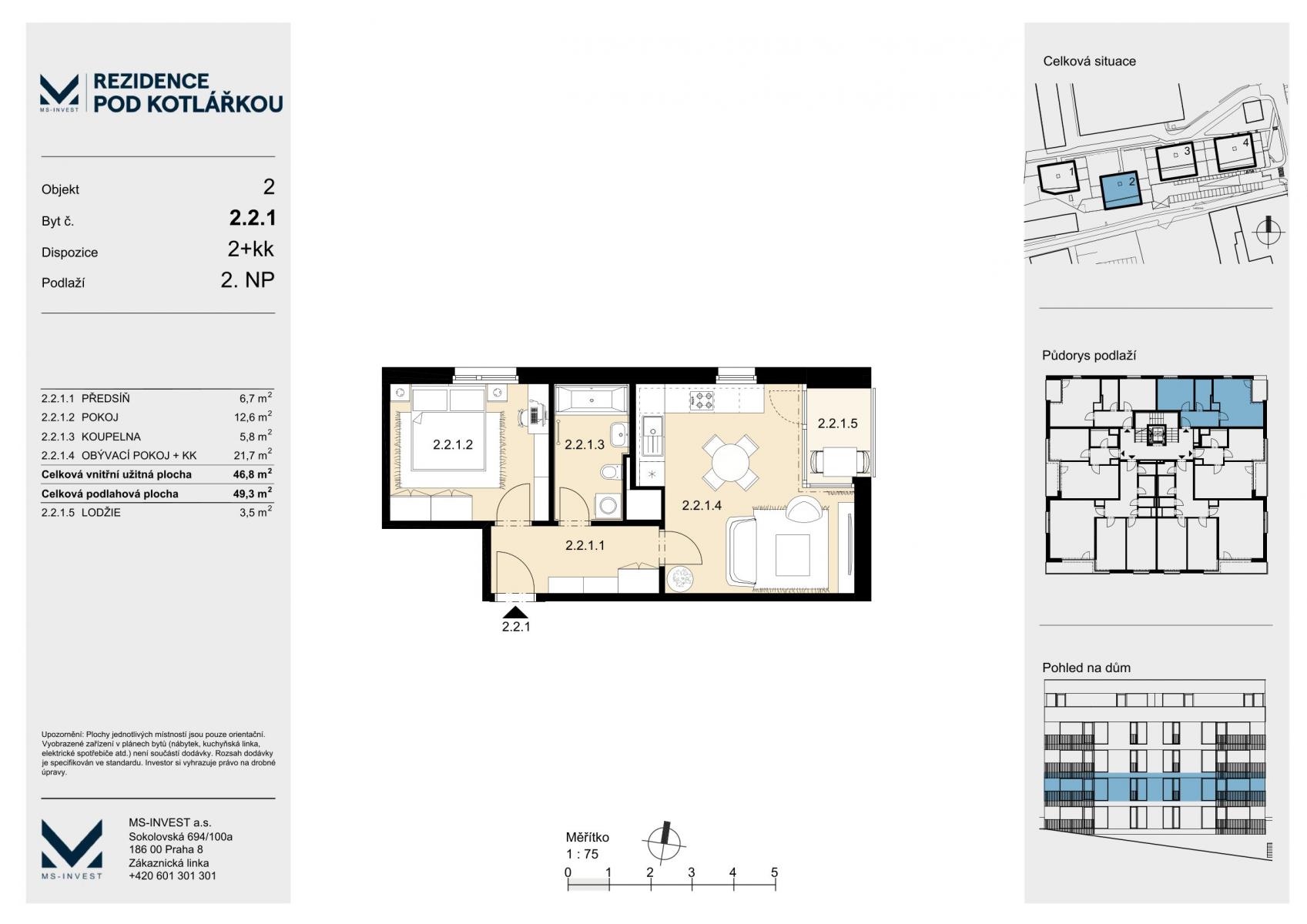 | Dispozice/podlahová plocha: | 2+kk/49.3 m² |