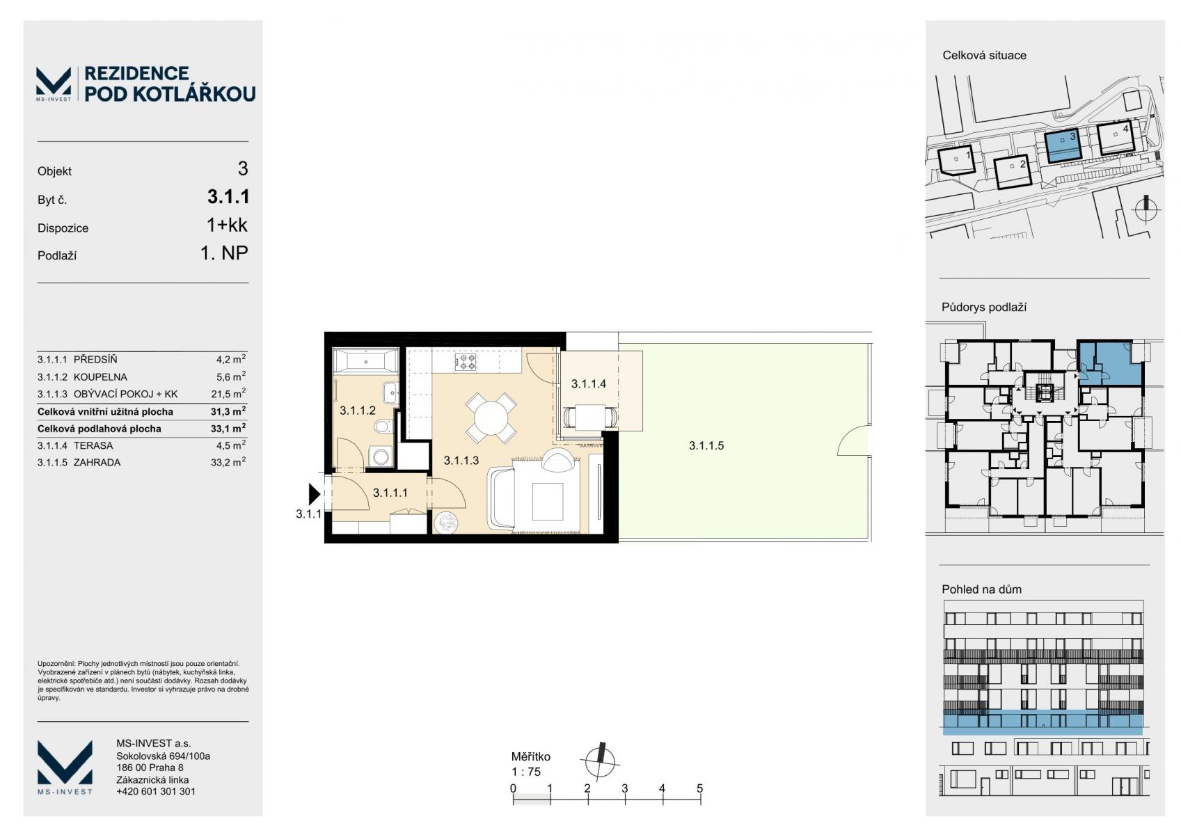 | Dispozice/podlahová plocha: | 1+kk/33.1 m² |