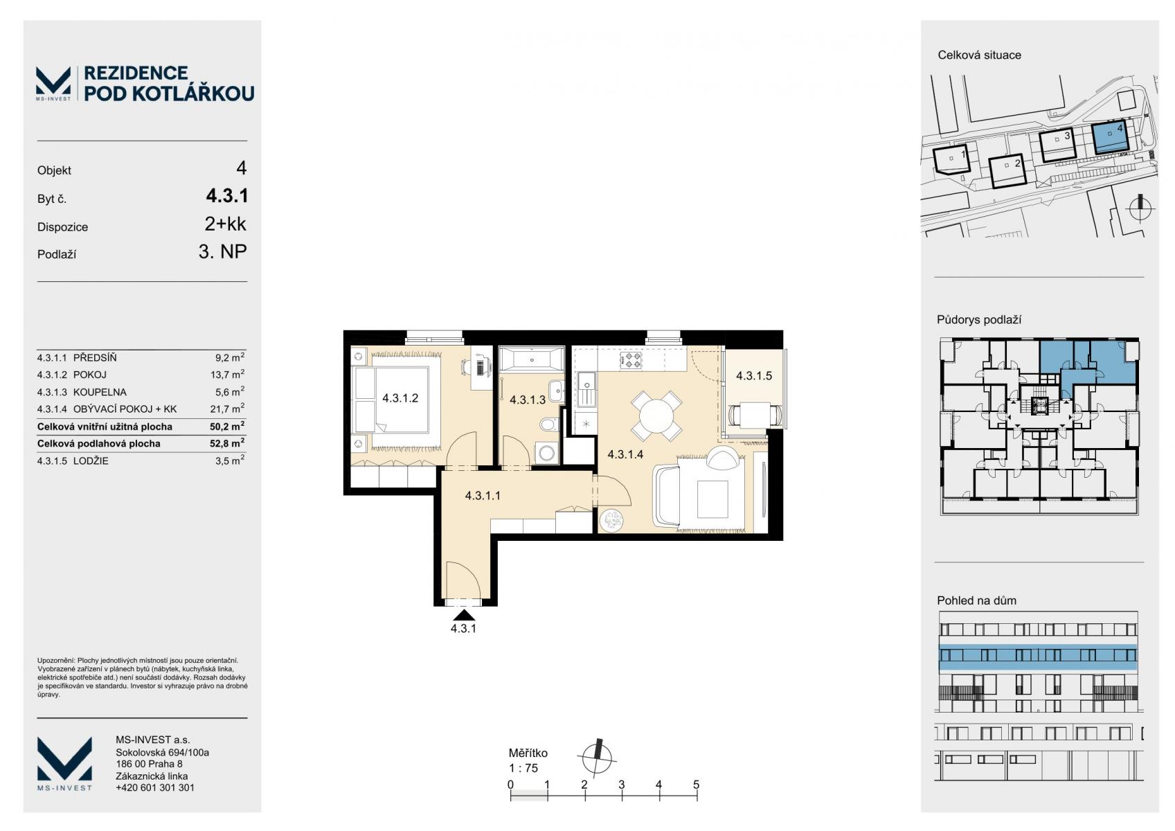 - Dispozice bytu: 2+kk