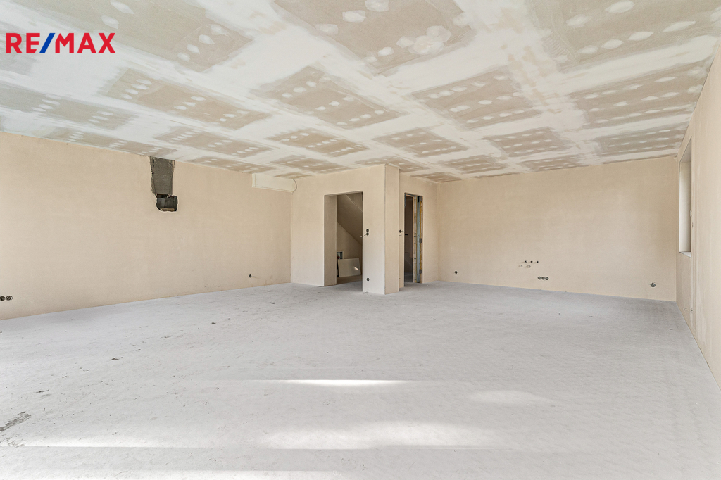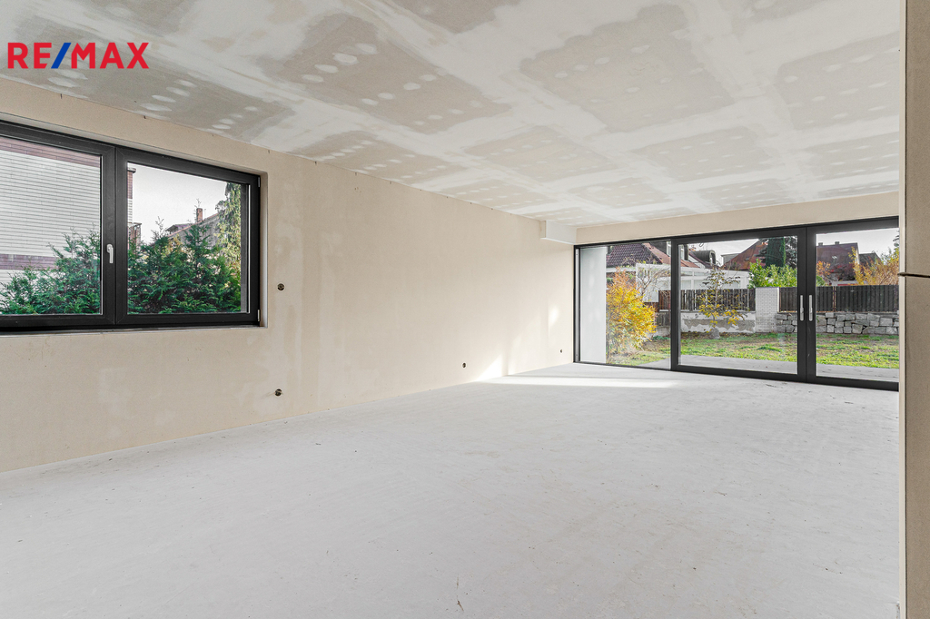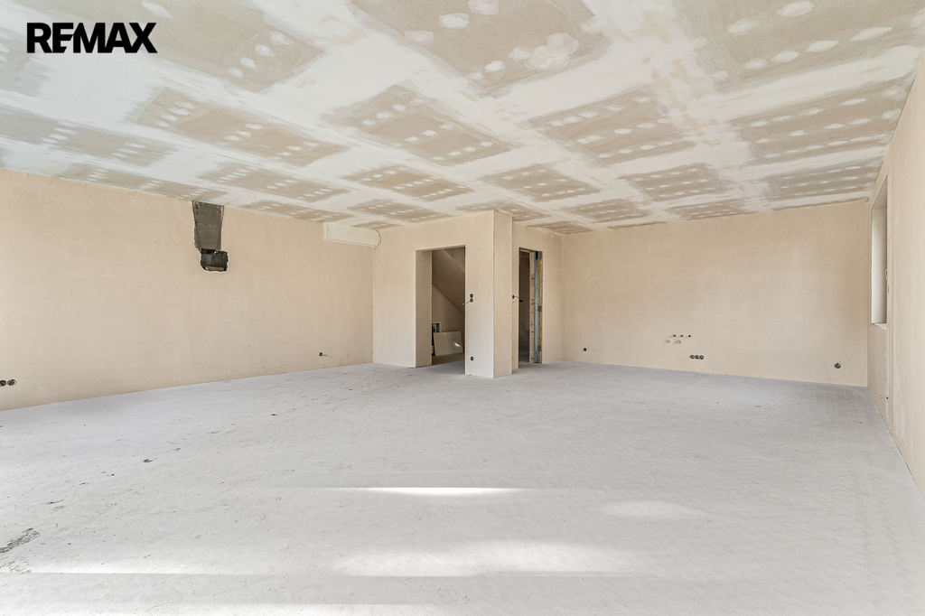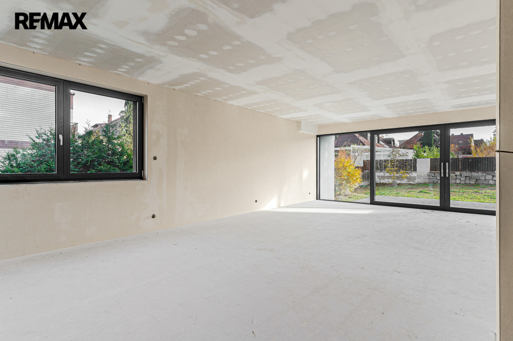 Dům je právě dokončený ve stavu shell & core – připravený k finálním úpravám přesně podle vašich představ. Už v tomto stavu ale oceníte kvalitu použitých materiálů: hliníková okna, podlahové vytápění, železobetonové stropy, strojně štukované omítky. To všechno tvoří pevný základ pro váš budoucí domov.