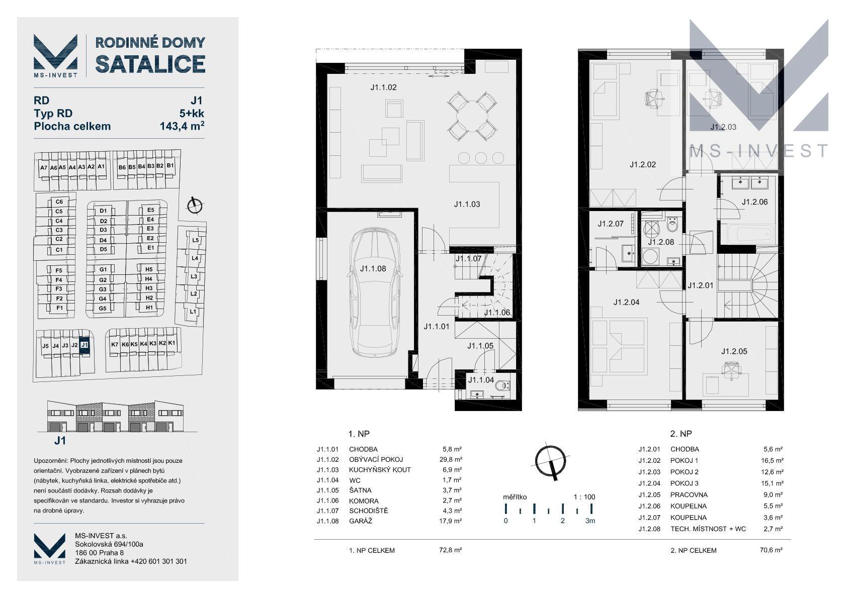 Novostavba ŘRD 5+kk 144 m2 s pozemkem 280 m2 v Praze - Satalicích, včetmně kuchyně NOLTEul. Hubačova