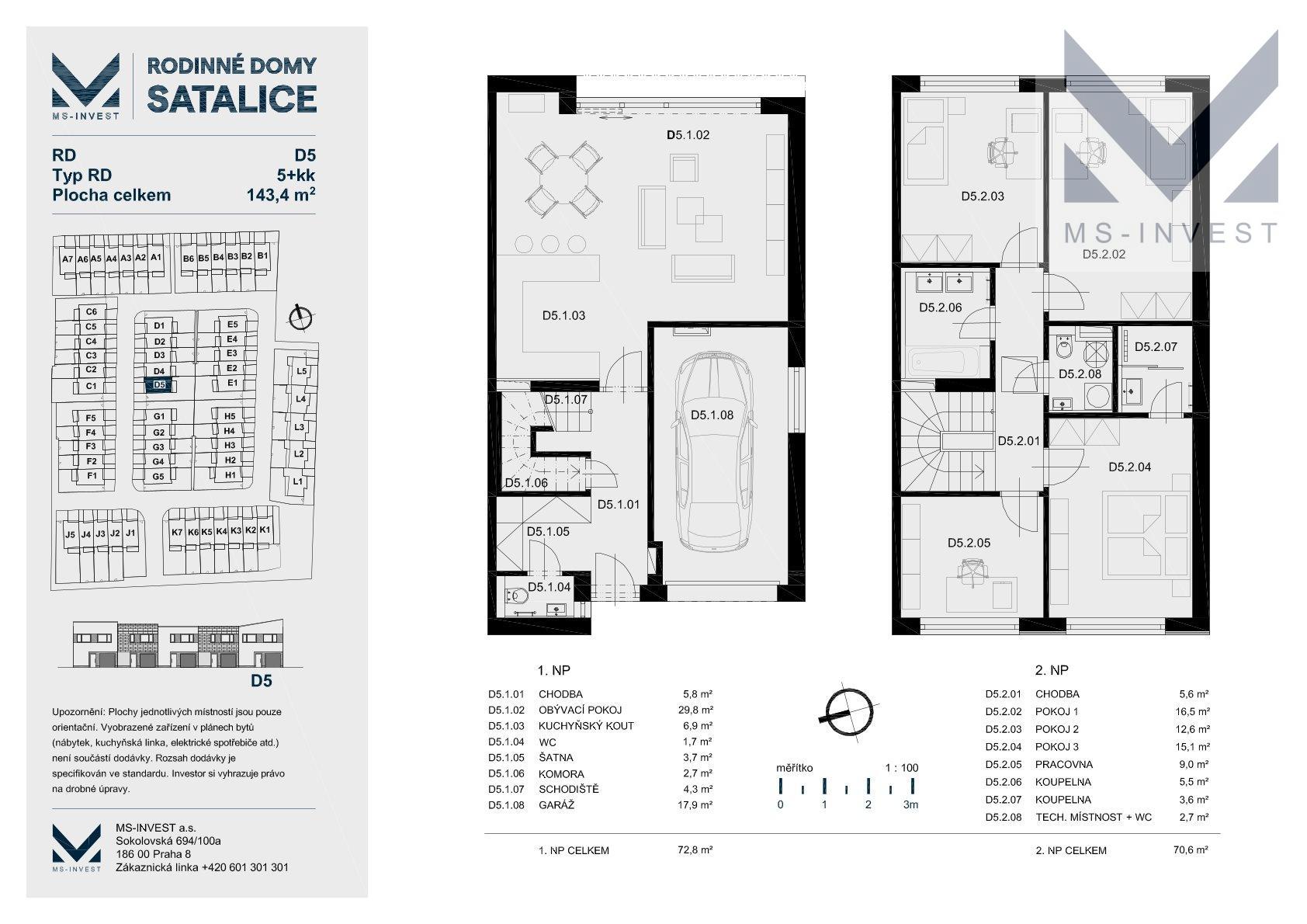 Novostavba ŘRD 5+kk 144 m2 s pozemkem 295 m2 v Praze - Satalicích