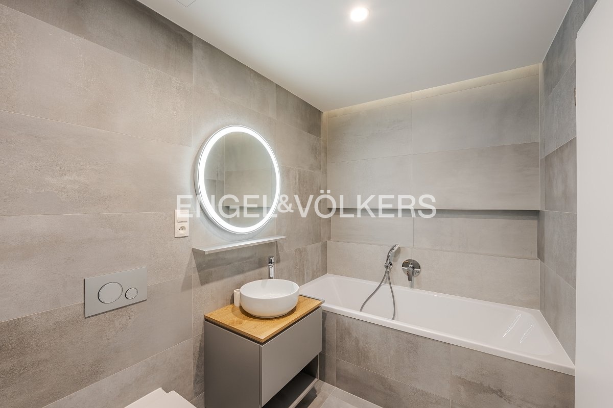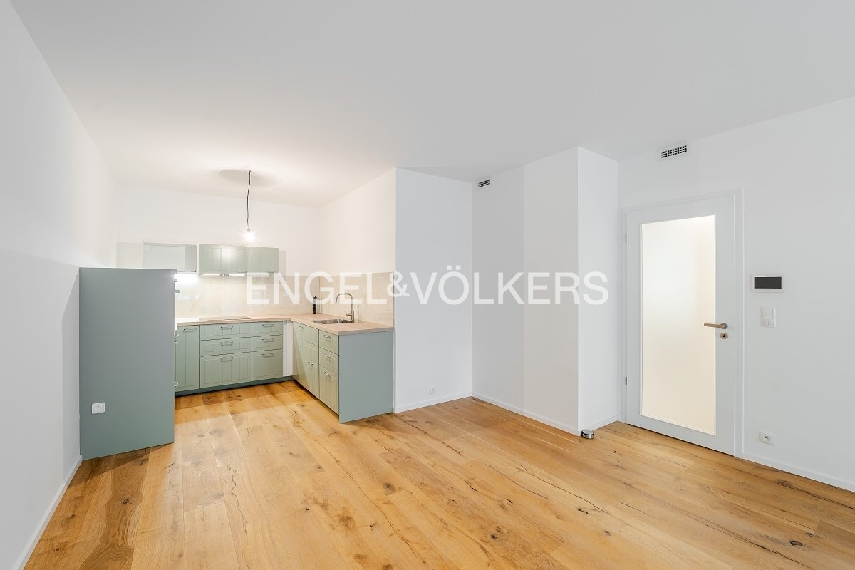 Byt je vybaven systémem rekuperace vzduchu a podlahovým vytápěním – vše lze pohodlně ovládat prostřednictvím smart home systému. Masivní dřevěné podlahy a velkoformátová okna dodávají interiéru příjemný a světlý charakter.