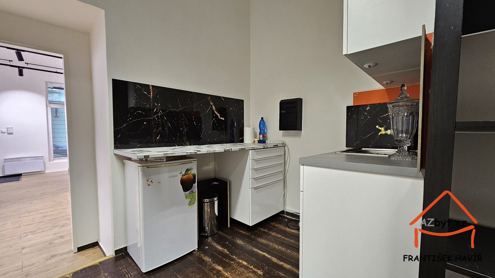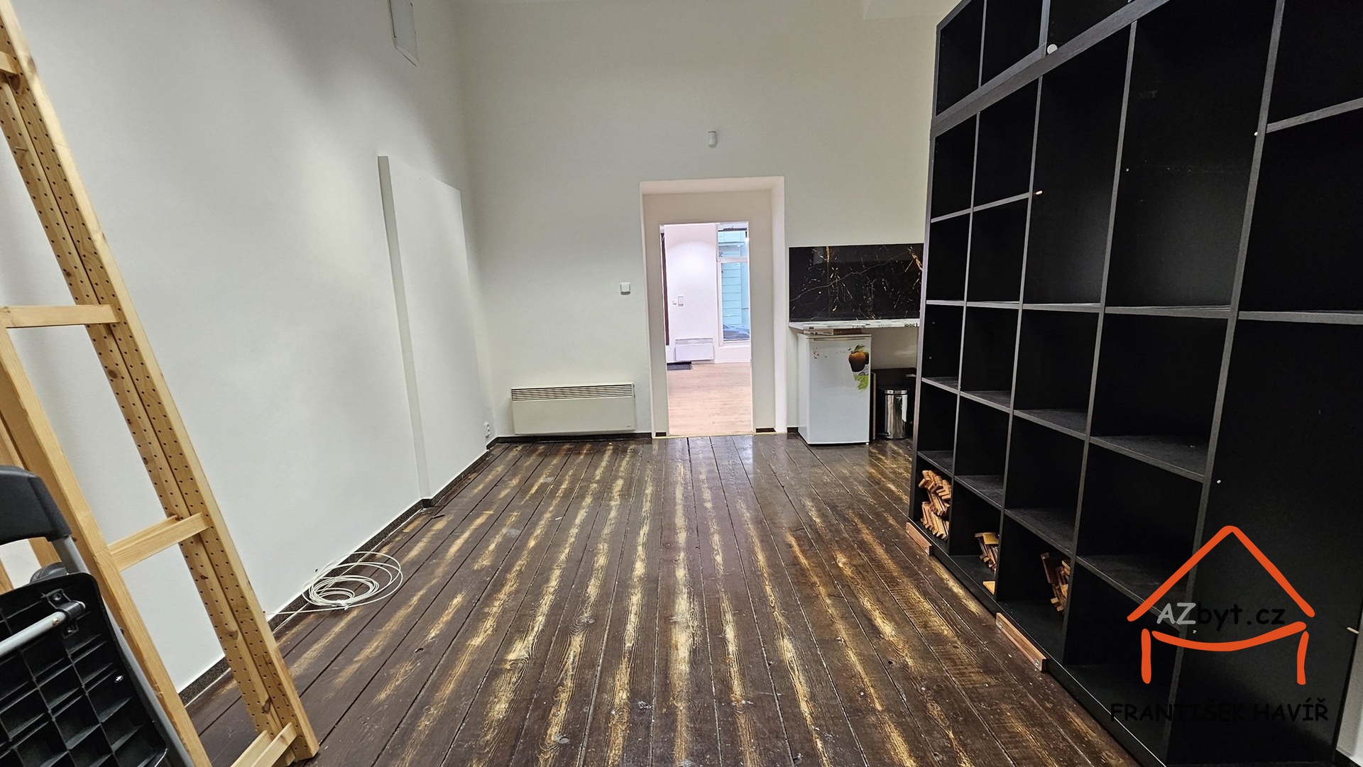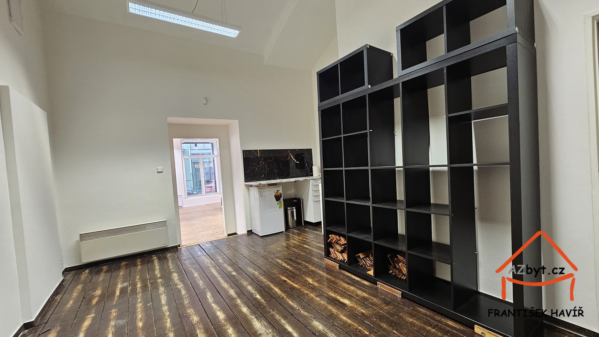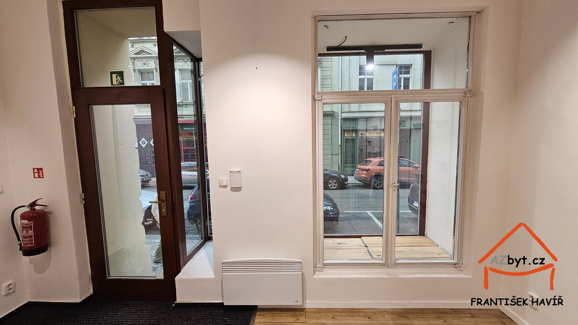 Obchod s výlohou a vstupem z ulice se skládá ze dvou místnosti (jedna s kuchyňským koutem) a samostatné toalety.