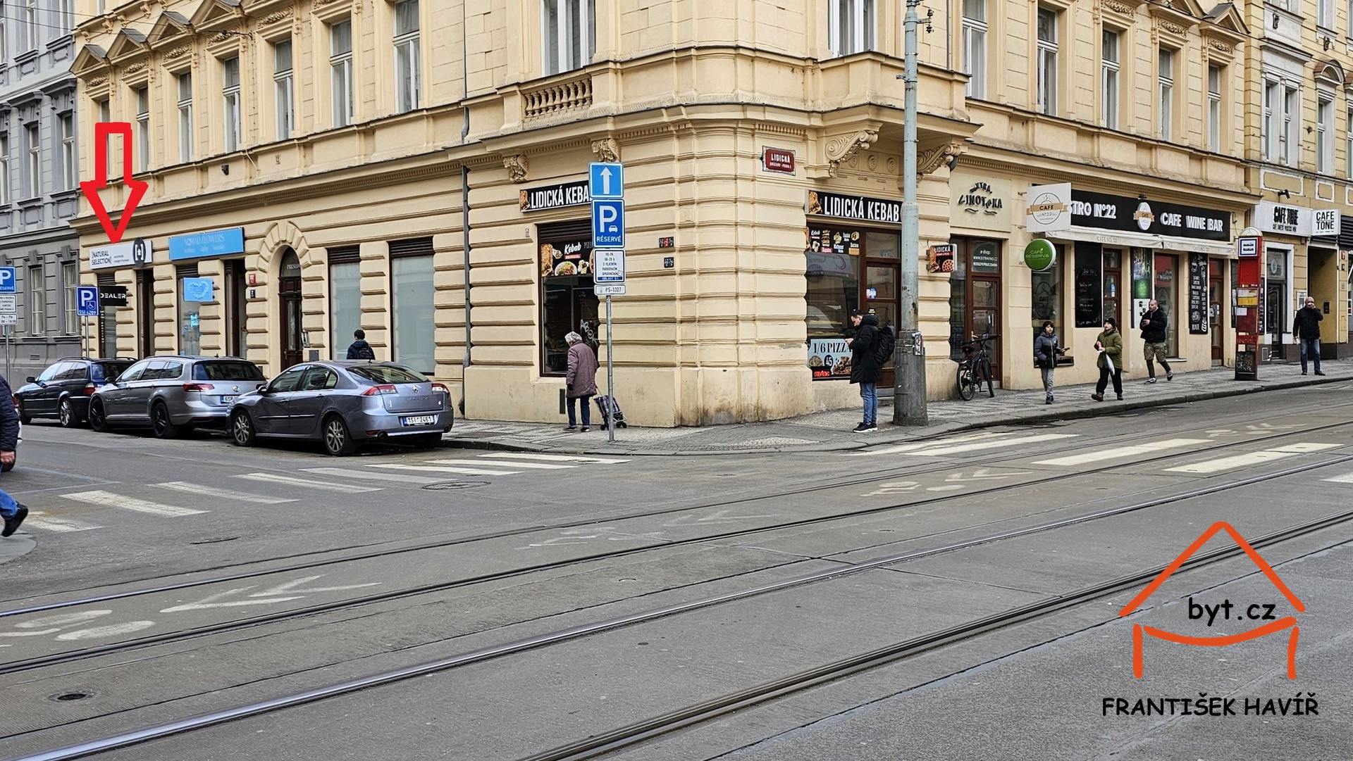 Tramvajová zastávka Zborovská 40 metrů, tři minuty chůze od metra Anděl.