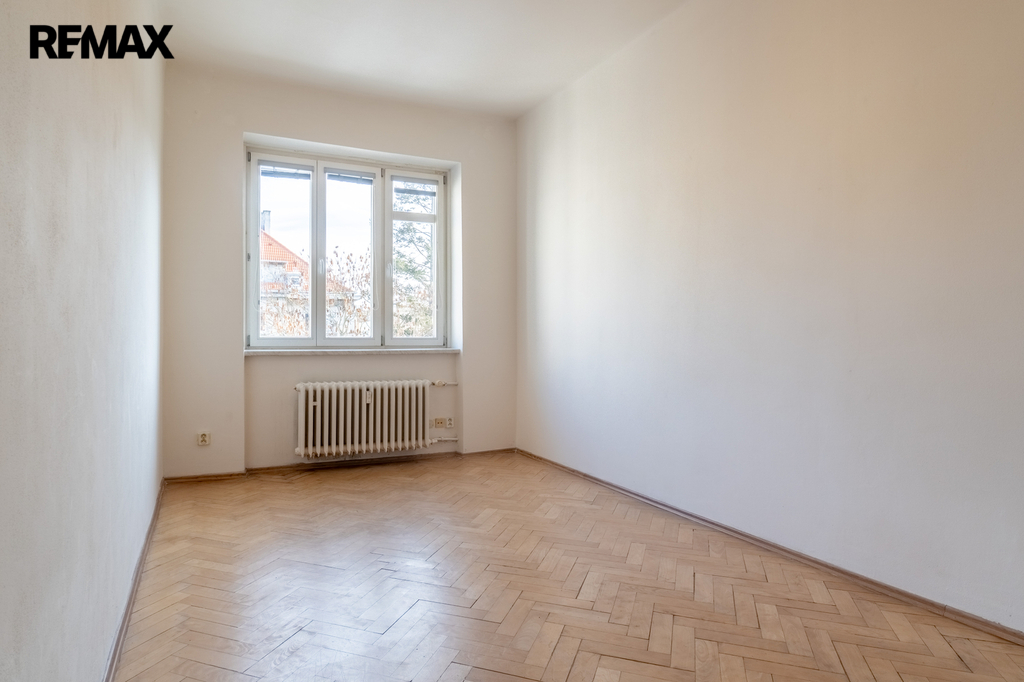 Toaleta je samostatná. V obytných pokojích jsou renovované parketové podlahy, které bytu dodávají příjemný charakter.