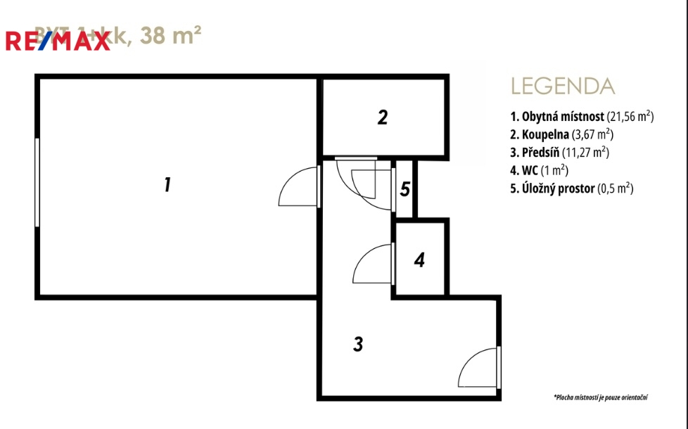 | Dispozice/podlahová plocha: | 1+kk/39 m² |