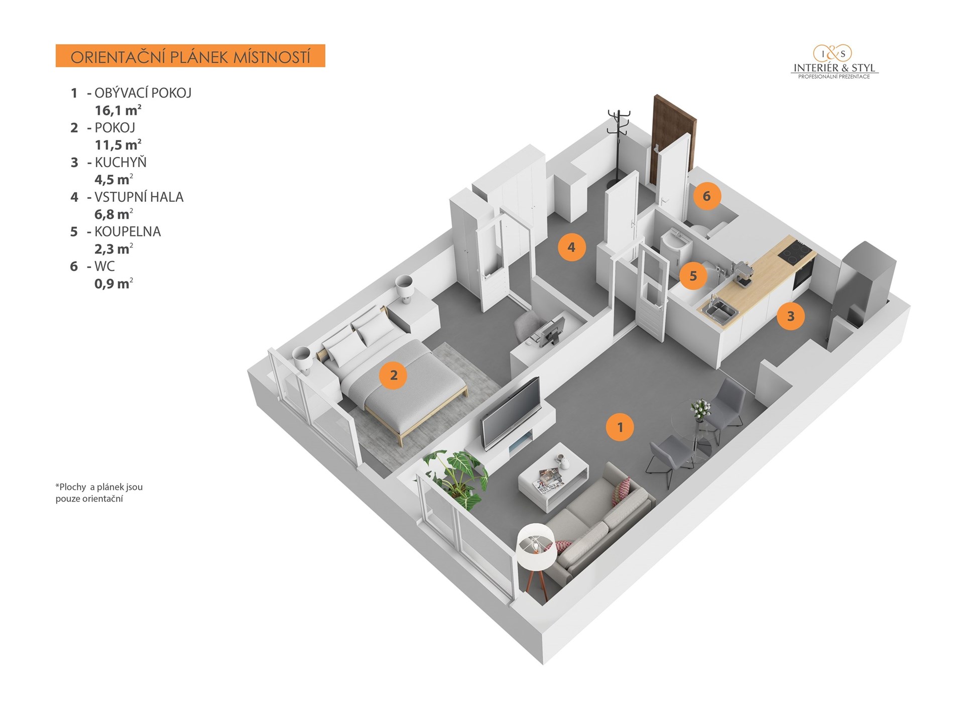 | Dispozice/podlahová plocha: | 2+kk/43 m² |