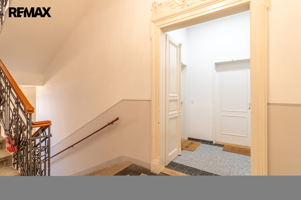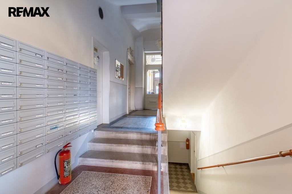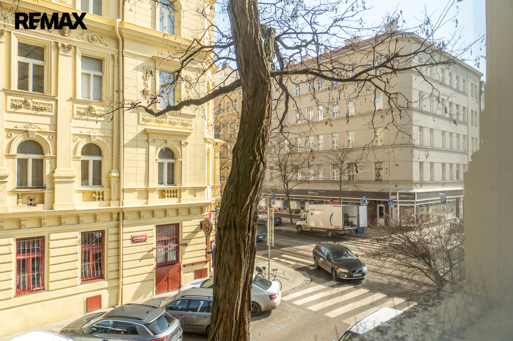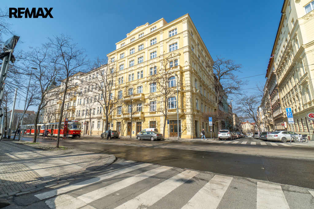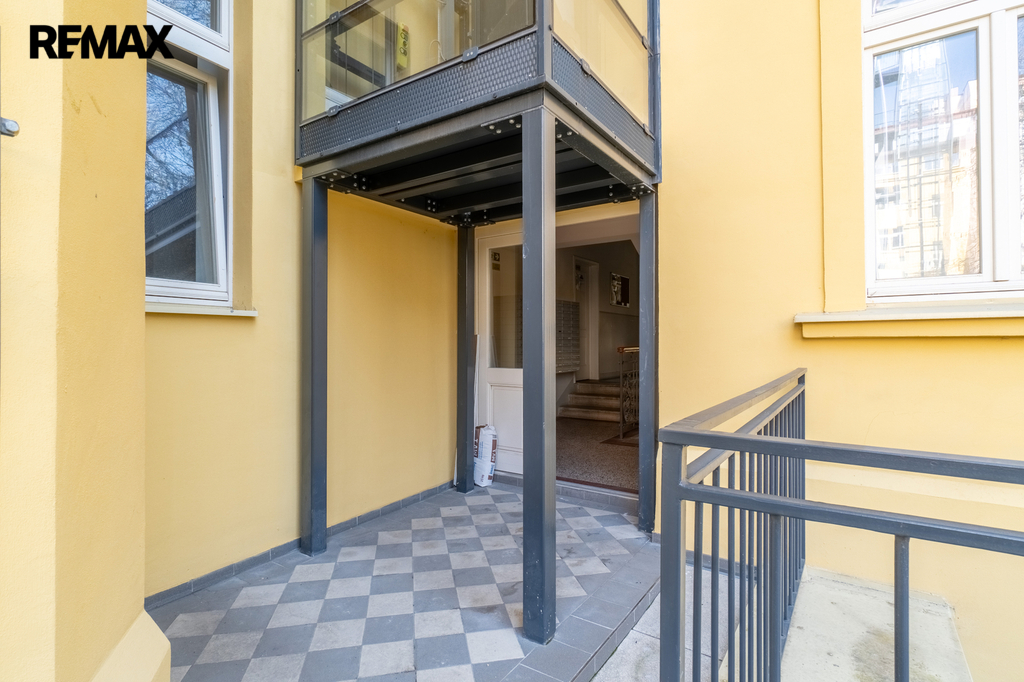 Nachází se v 1. patře se vstupem z ulice Korunní, přičemž okna směřují do klidnější ulice Nitranská. Díky tomu nabízí ideální kombinaci pulzujícího města a klidného bydlení.