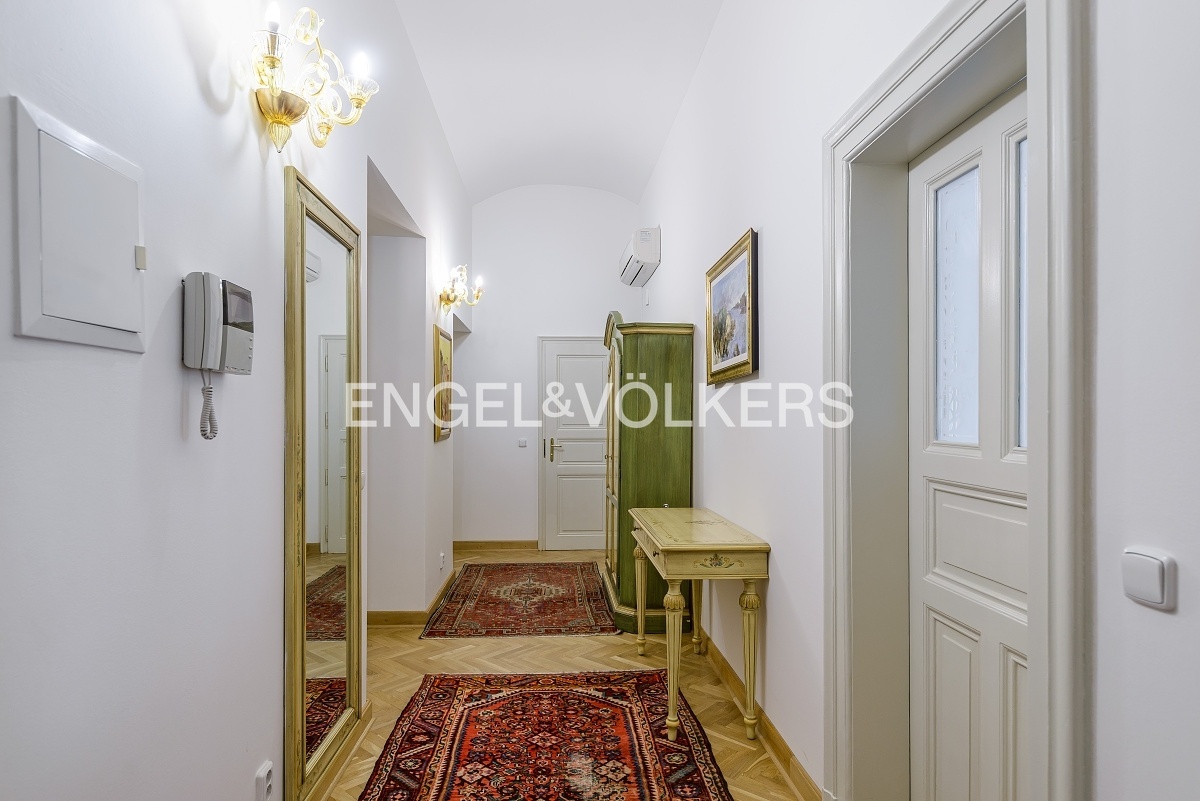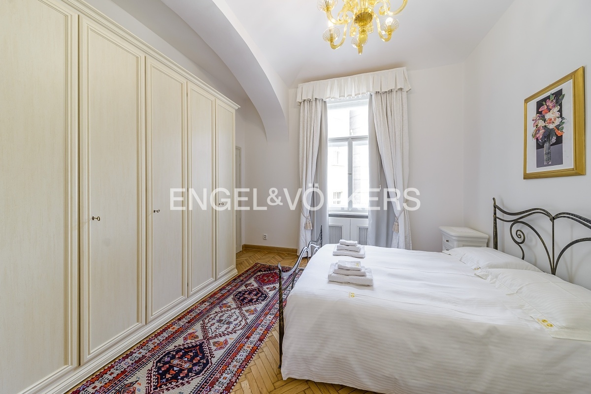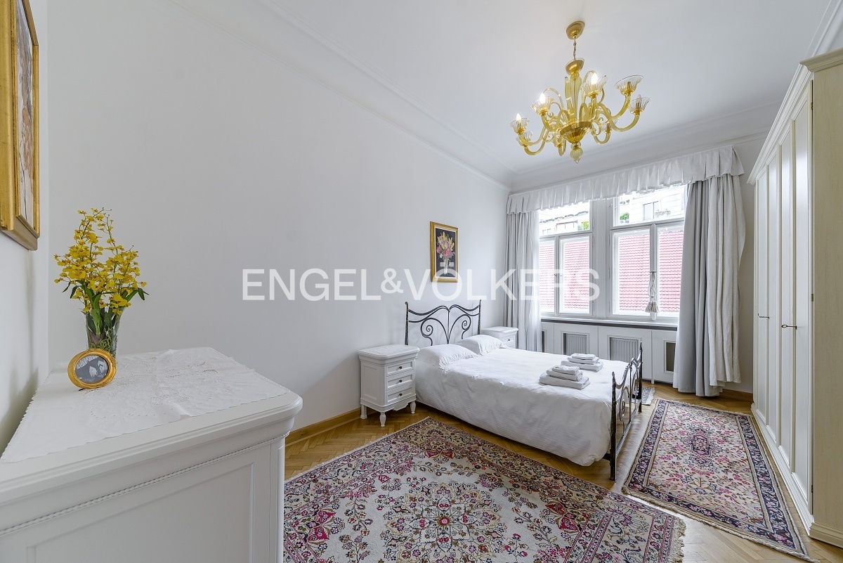 K okamžitému pronájmu nabízíme plně zařízený byt s dispozicí 3+1. Byt se nachází ve 4. nadzemním podlaží historického činžovního domu s výtahem. V bytě jsou zachovány původní prvky a je kompletně zařízen nábytkem v italském stylu.
