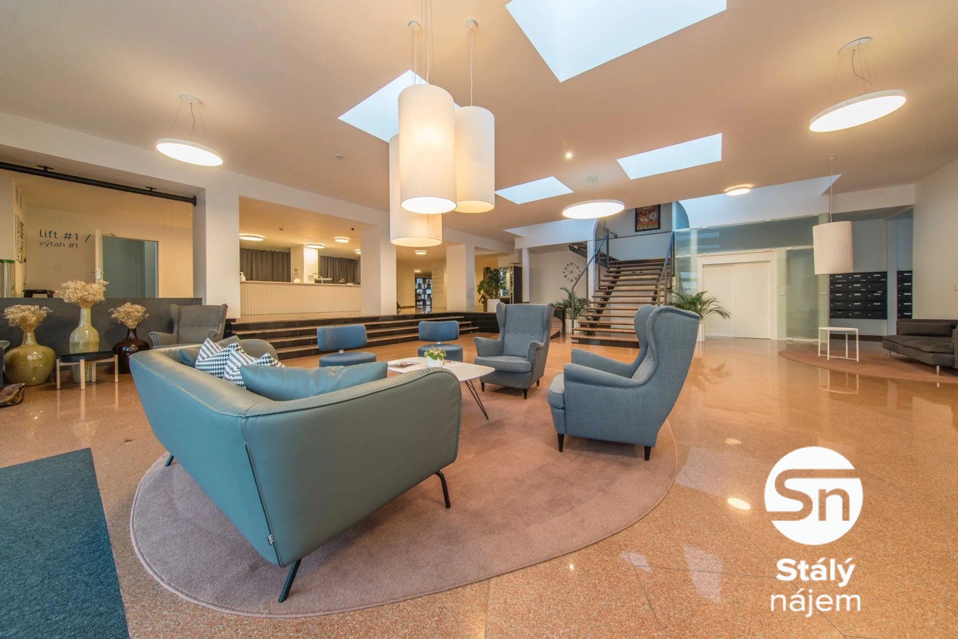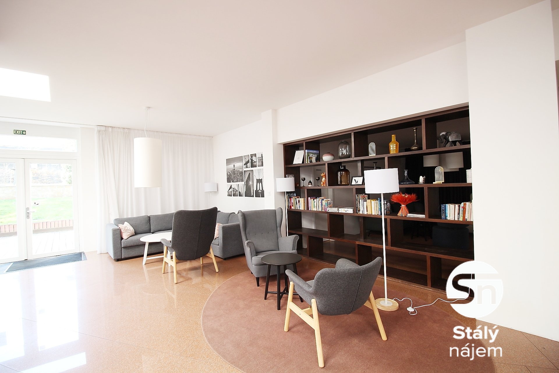 Byt je součástí moderní rezidence Vbloku, která nabízí řadu benefitů. V rámci ceny podnájmu můžete využívat dvě fitness zóny přímo v budově, relaxační zónu s krbem, TV místnost a zahradu s grilem. Za malý poplatek lze využít i prádelnu a sušárnu přímo v budově. Recepce funguje 24/7, což zajišťuje maximální komfort a bezpečnost.