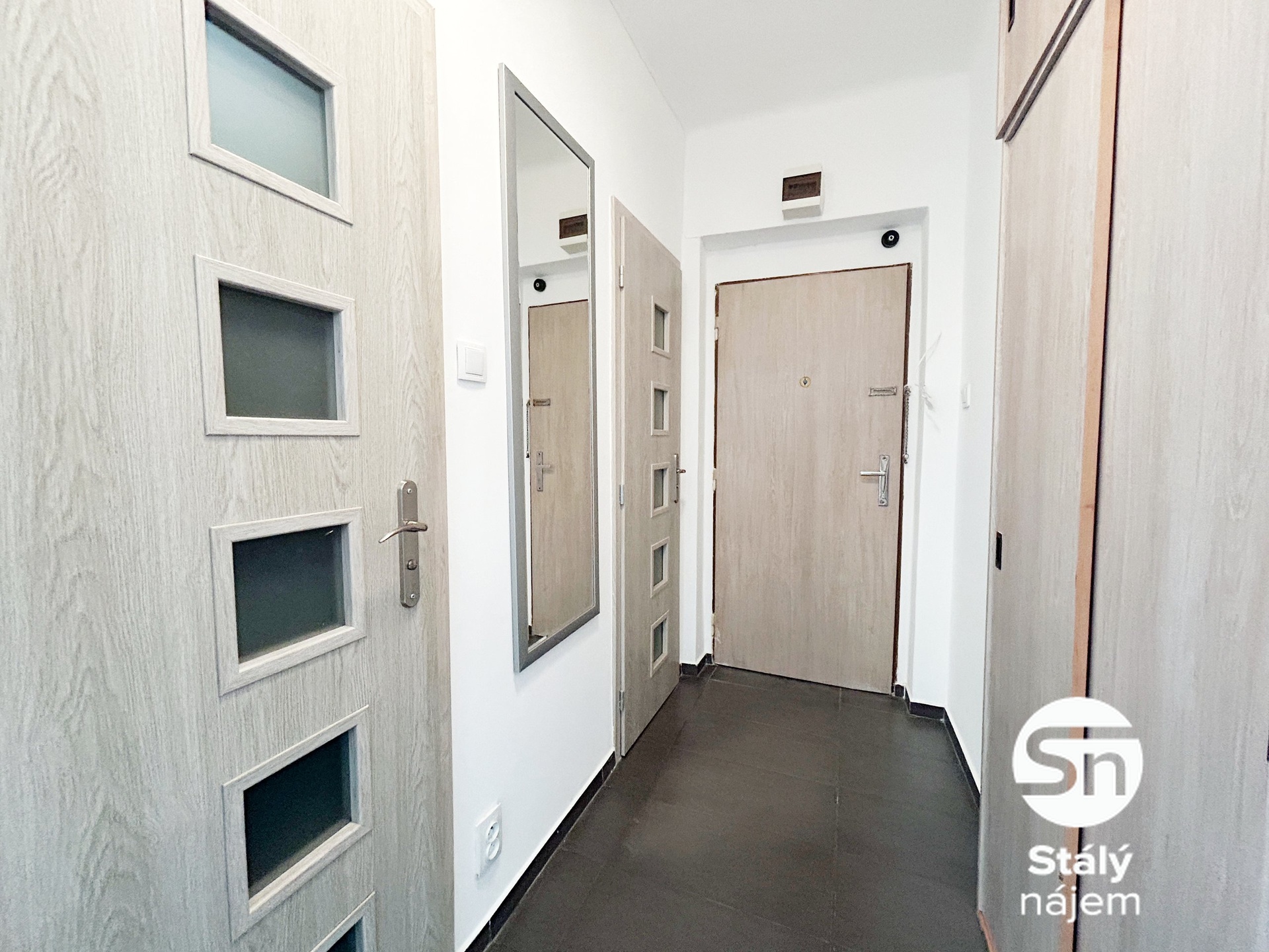 Dispozičně je byt řešen jako obývací pokoj s kuchyňským koutem, samostatná ložnice, koupelna a předsíň. Byt je orientován do klidného vnitrobloku, takže i přes polohu u hlavní komunikace je zde příjemné ticho. Součástí bytu je také balkon vhodný k posezení. Postel je z bytu odstraněna a gauč si mohou podnájemníci případně odstěhovat, byt je tedy možné si částečně přizpůsobit vlastním potřebám. K bytu náleží sklepní kóje.