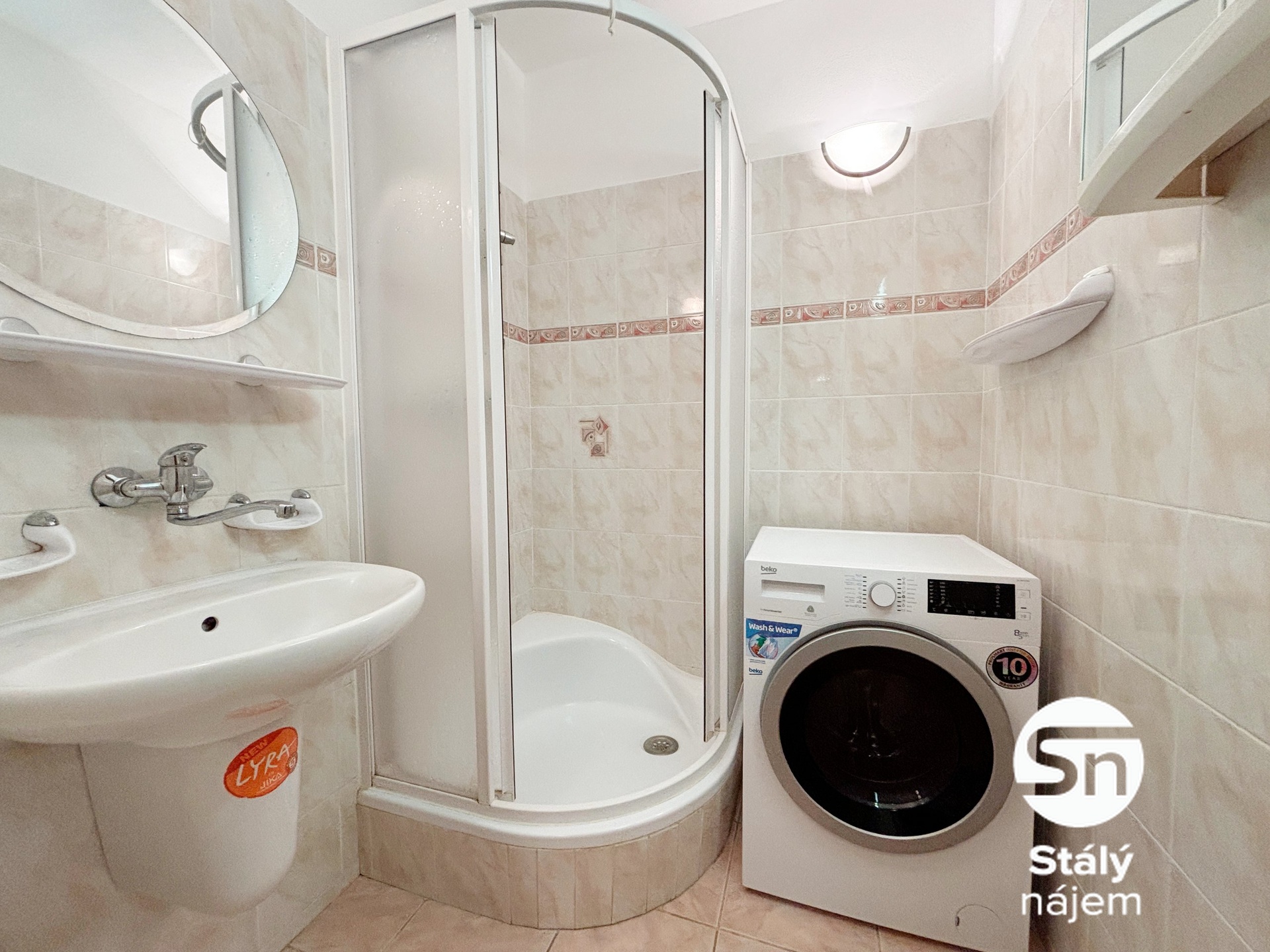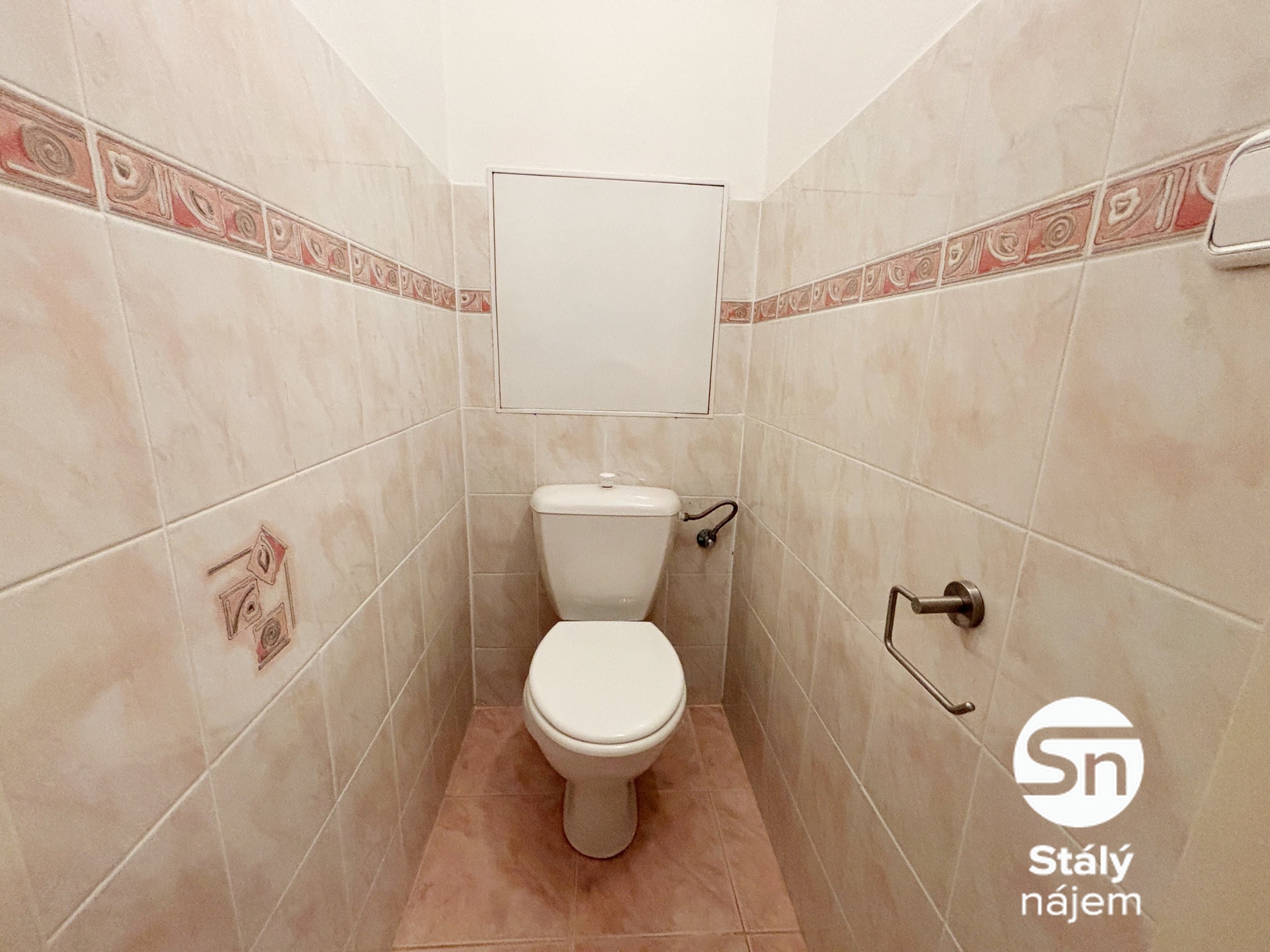 Koupelna je vybavena sprchovým koutem a pračkou, toaleta je samostatná. V chodbě je velká skříň poskytující dostatek úložného prostoru. Dům nabízí i společnou kolárnu, která je zabezpečená kamerovým systémem, takže se do ní nedostane nikdo nepovolaný. V bytě je praktická komora, která slouží jako náhrada sklepa a nabízí dostatek úložného prostoru.