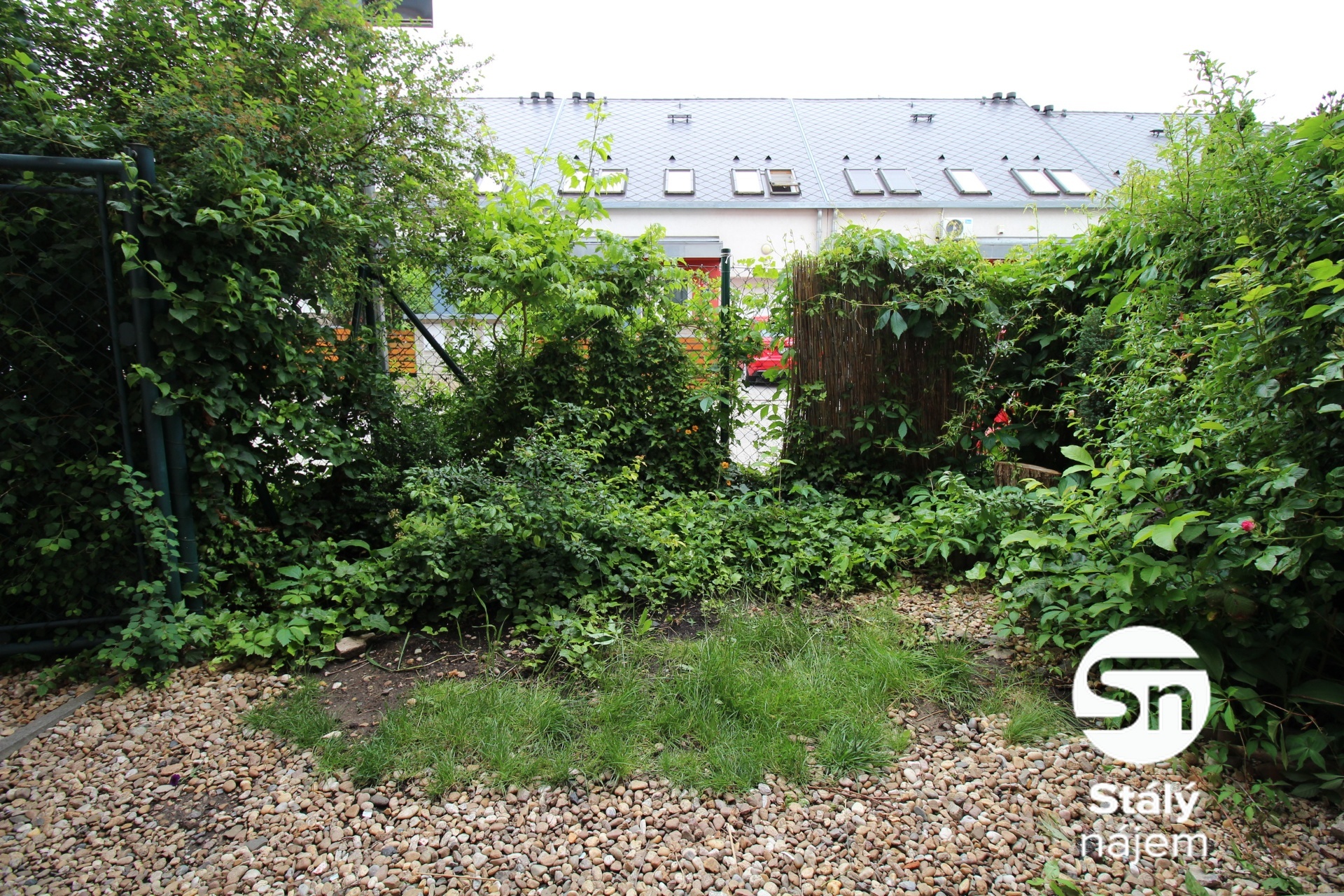 Prostorný obývací pokoj je propojen s kuchyňským koutem, který je vybaven vestavěnými spotřebiči, jako jsou elektrická trouba, elektrická varná deska, myčka a lednice s mrazákem. Z obývacího pokoje je přímý vstup na klidnou zahrádku, ideální pro relaxaci a posezení v příjemném venkovním prostředí. Dětský pokoj je zařízen vestavěnými skříněmi, které nabízejí dostatek úložného prostoru, a psacím stolem. Ve druhém pokoji naleznete vestavěnou skříň, jinak je tento pokoj nezařízený a můžete si ho zařídit dle vlastních představ. Koupelna disponuje vanou a umyvadlem. Toaleta je samostatně. V chodbě jsou komody poskytující další úložný prostor.