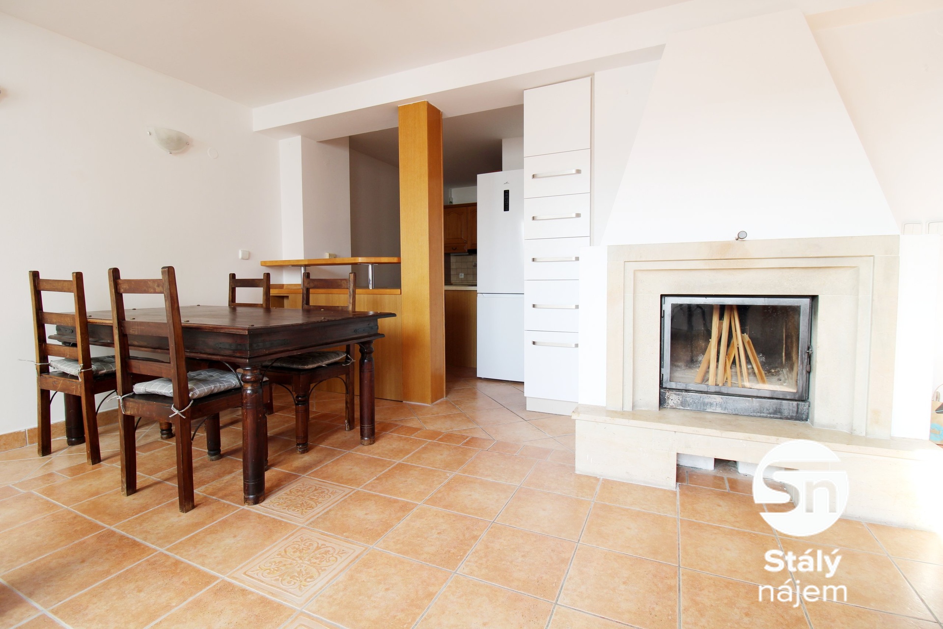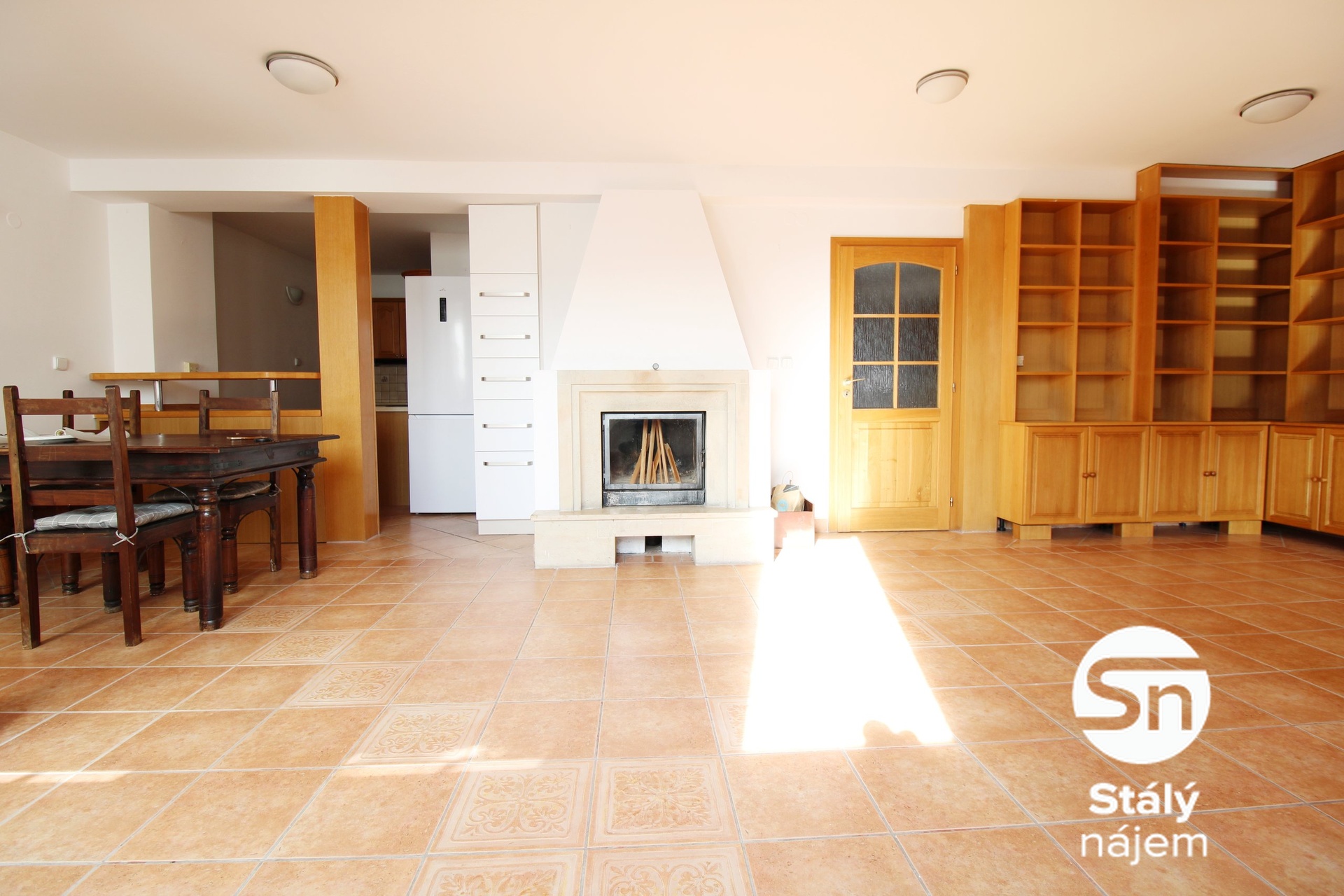 Byt prošel pečlivou a nadstandardní rekonstrukcí a nabízí kombinaci elegance, prostoru a maximálního komfortu. Dominantou interiéru je prostorný obývací pokoj s krbem, plynule navazující na moderní kuchyňský kout s barovým posezením – ideální místo pro rodinné chvíle i společenská setkání.