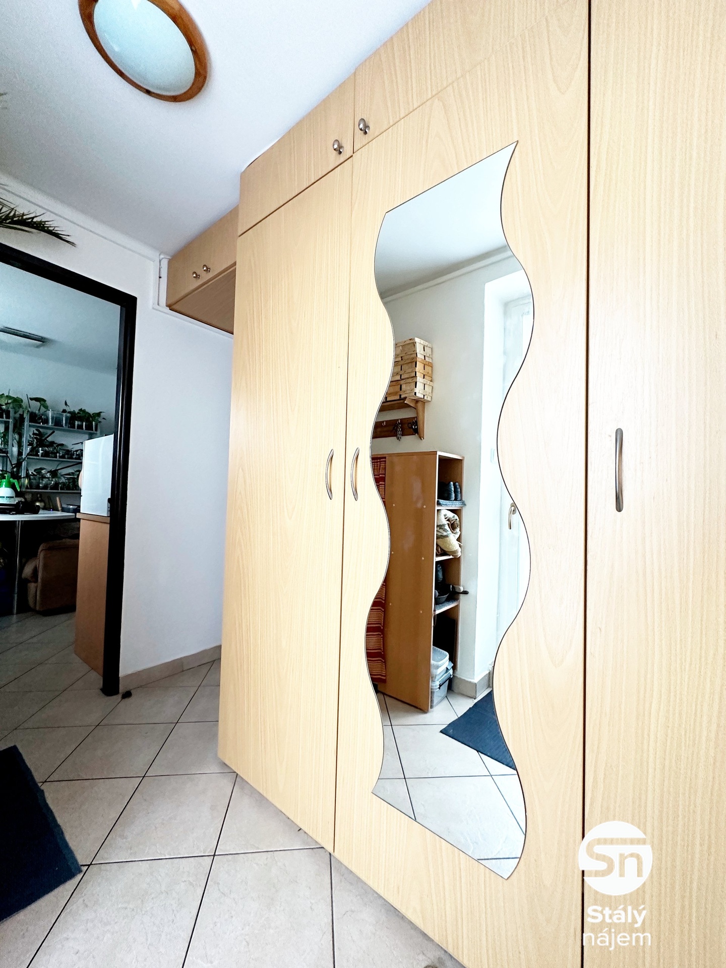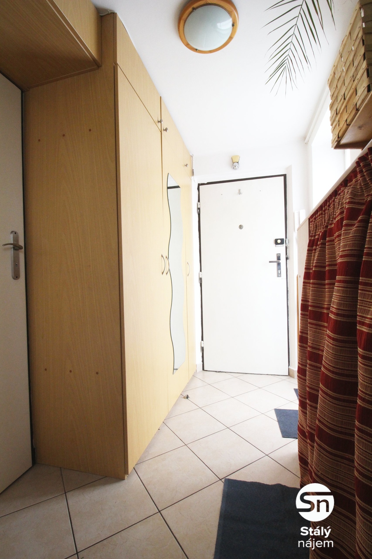 Koupelna je zařízena sprchovým koutem, umyvadlem a toaletou. V předsíni je dostatek úložného prostoru díky velké skříni a botníku. Vybavení bytu uvedené na fotografiích, nemusí odpovídat skutečnému stavu bytu.