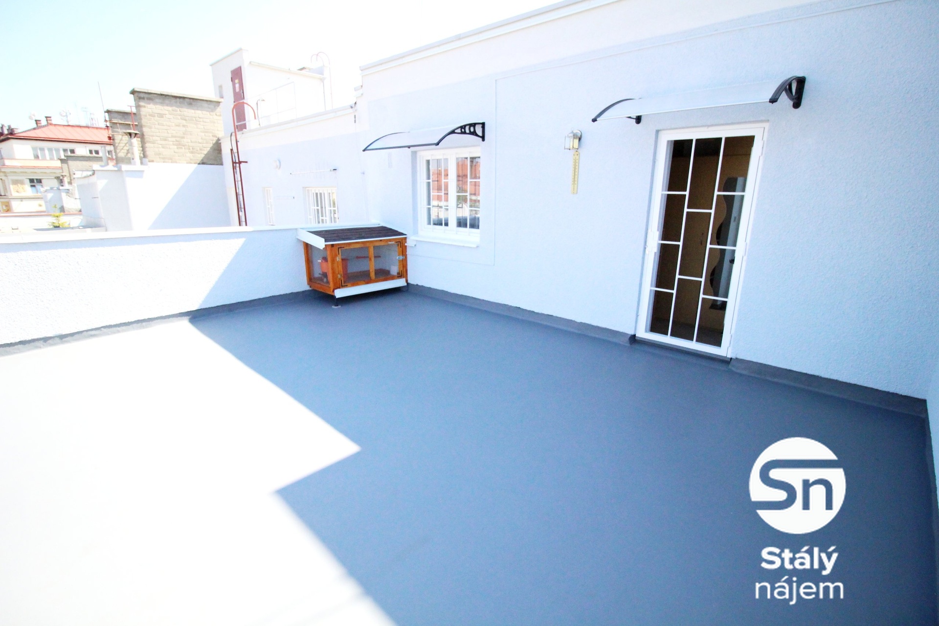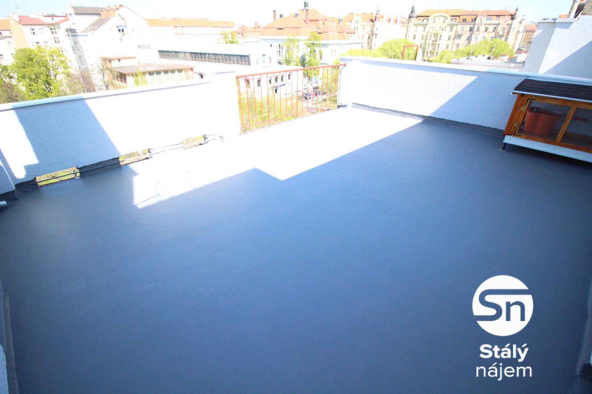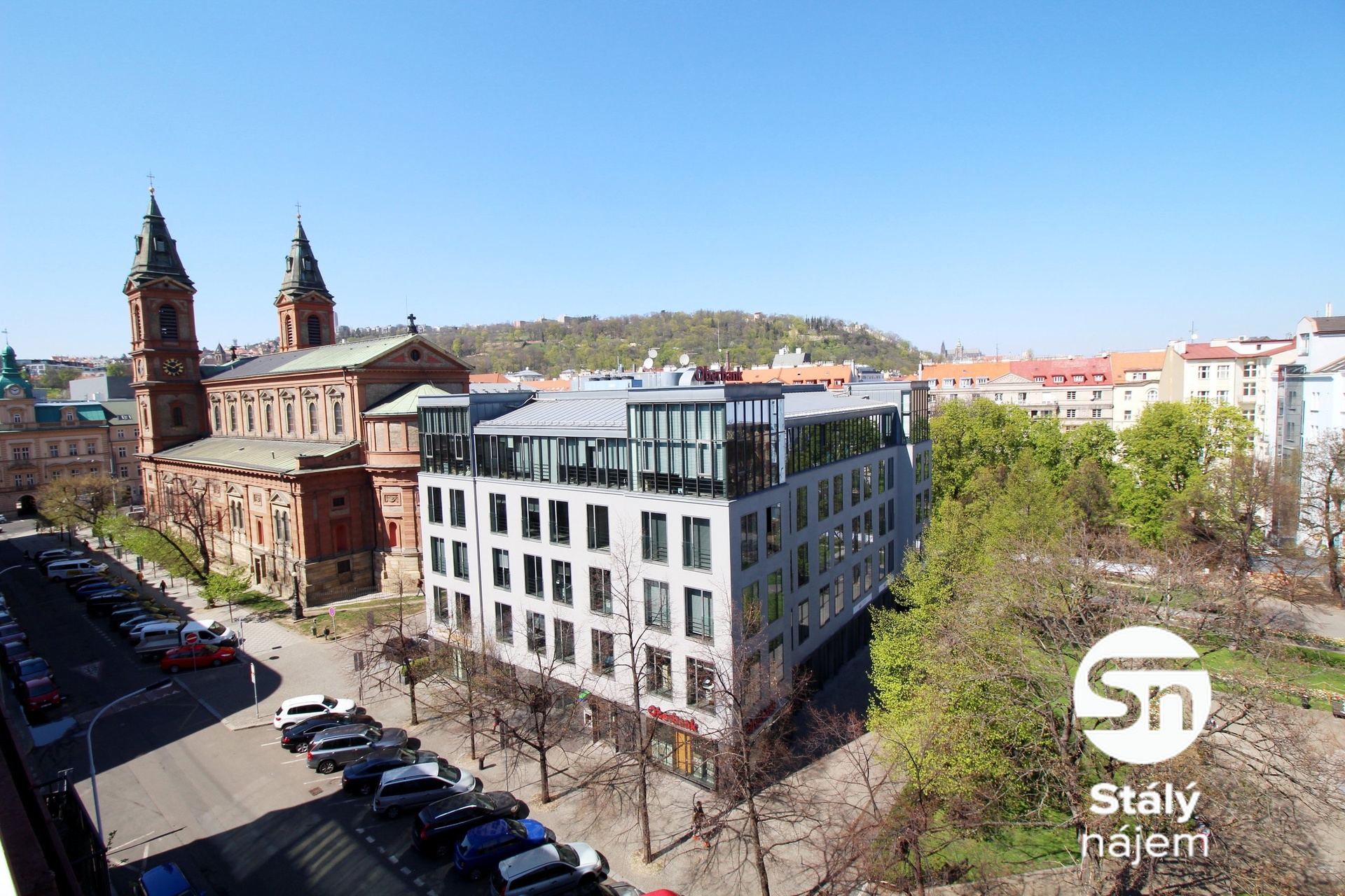 Nabízíme k podnájmu útulný byt 1+1 o celkové rozloze 52 m2 v cihlové budově na 6. podlaží. Byt se nachází ve klidné lokalitě vedle OC Nový Smíchov v ulici náměstí 14. října, Praha 5 - Smíchov s velkou terasou s pohledem do vnitrobloku.