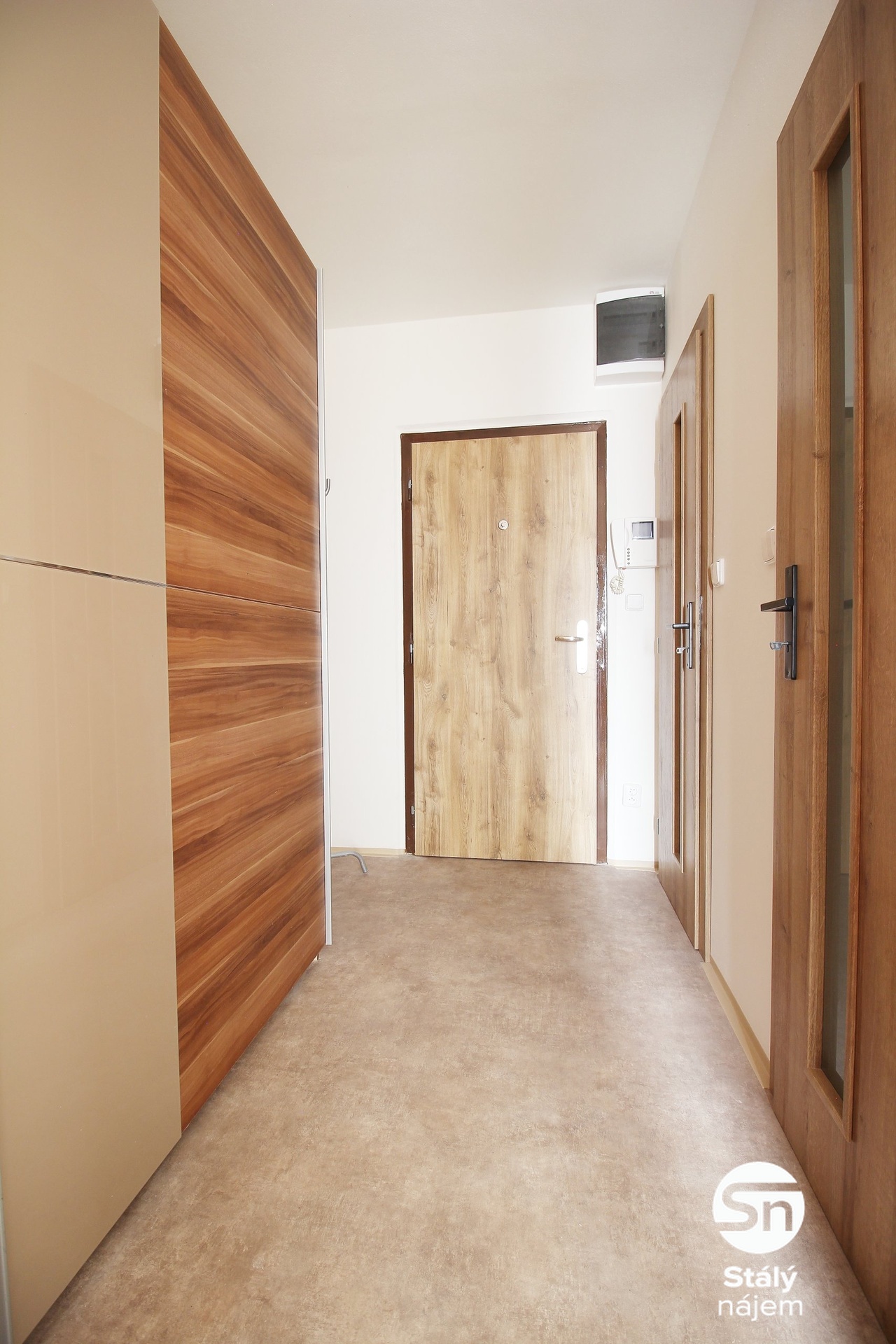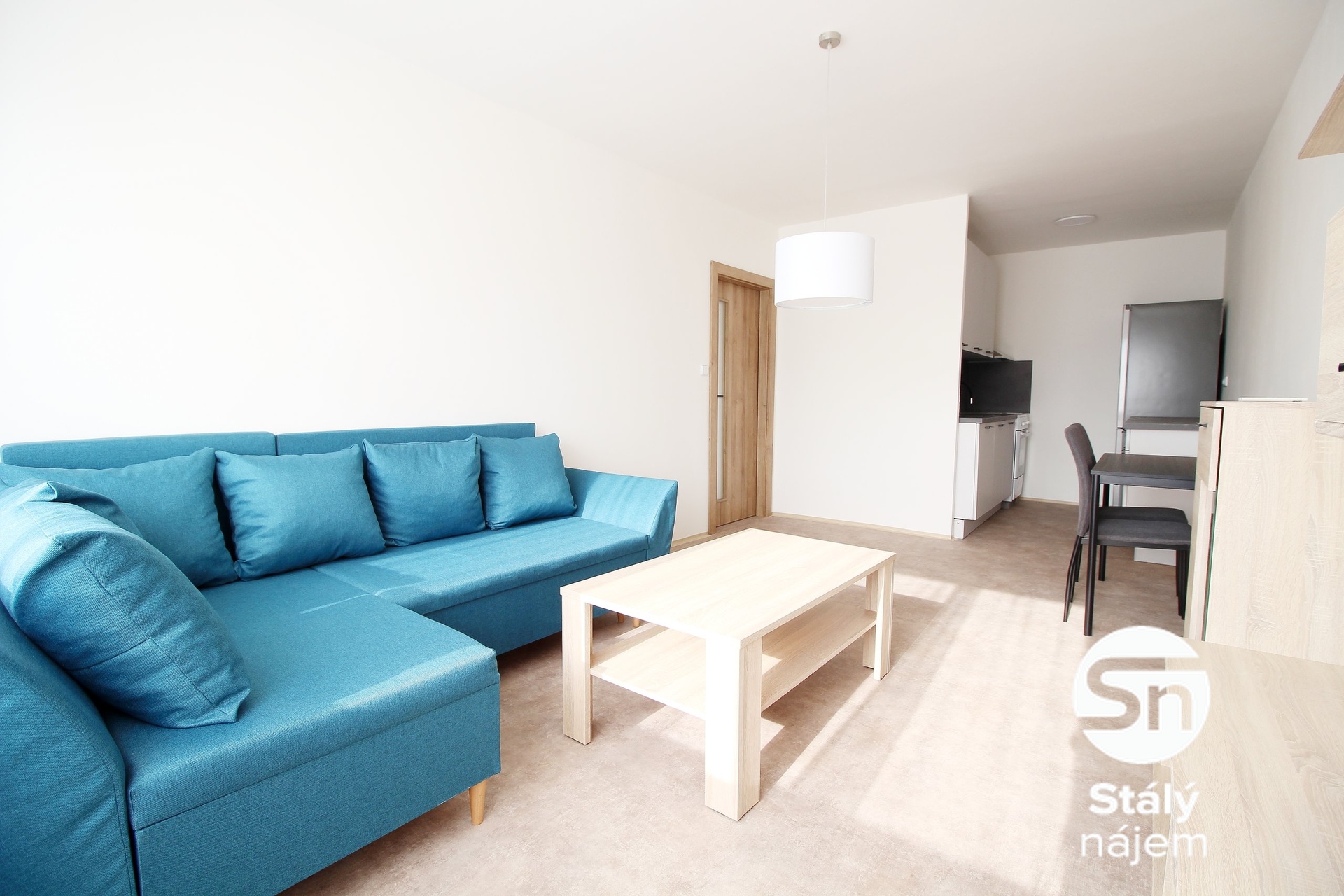 Tento moderně zrekonstruovaný byt poskytuje komfortní bydlení. Prostorná kuchyňská linka je vybavena elektrickou troubou s varnou deskou, digestoří a lednicí s mrazákem. V obývacím pokoji najdete velkou rohovou sedačku, obývací stěnu a jídelní stůl se židlemi. Ložnice disponuje manželskou postelí a prostornou skříní. V chodbě je vestavěná skříň, která nabízí dostatek úložného prostoru. Moderní koupelna je vybavena menší vanou se zástěnou, umyvadlem a pračkou. Toaleta je samostatná. Okna jsou opatřena venkovními elektrickými roletami, a z bytu je krásný výhled do zeleného vnitrobloku s dětskými hřišti.