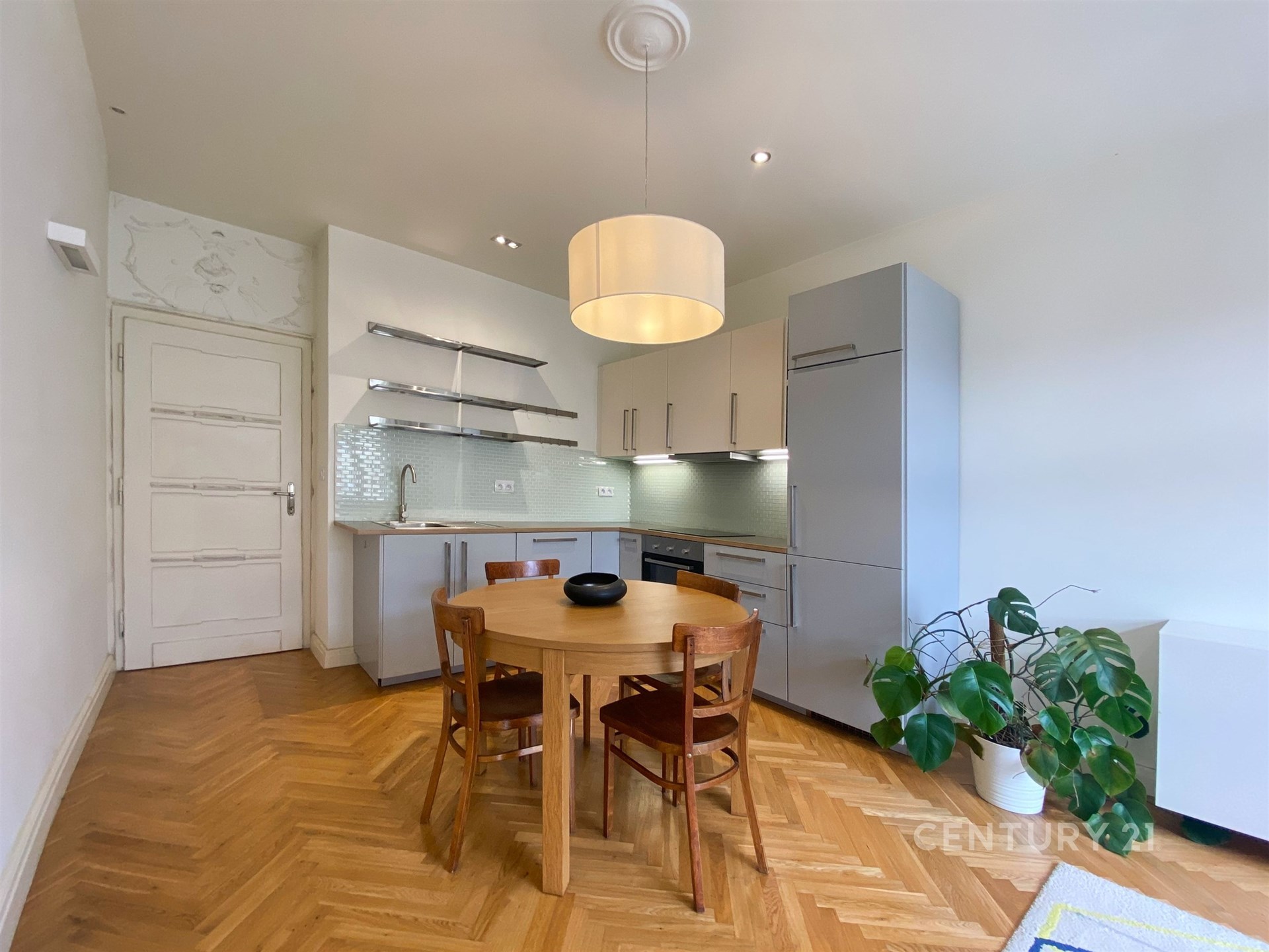 Nabízíme k podnájmu krásný a zařízený byt 2+kk, stylově jde o kombinaci 30. let a moderní doby, který se nachází v centru Vršovic na Vršovické ulici. Tento prosvětlený útulný byt najdeme ve třetím patře cihlové budovy bez výtahu.