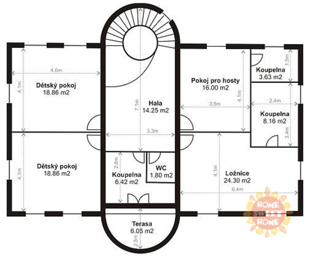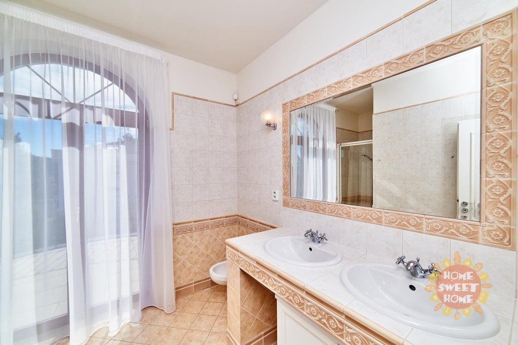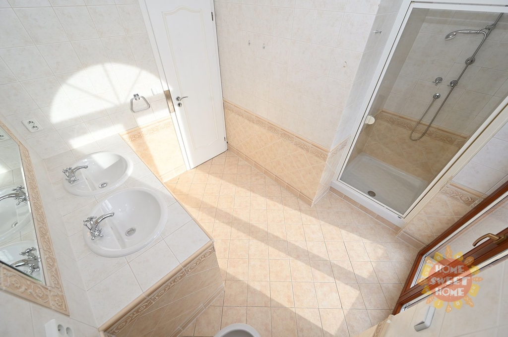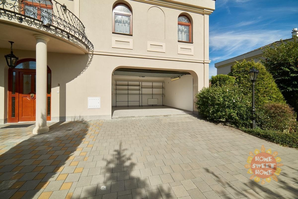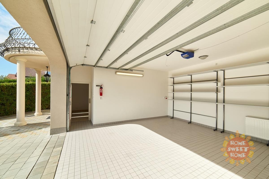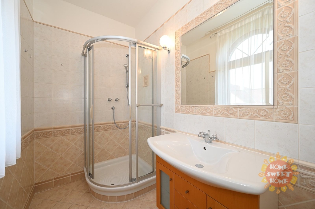 V přízemí domu je vstupní hala, prostorný obývací pokoj s krbem a kompletně vybaveným kuchyňským koutem, toaleta, šatna a prostorná garáž. V prvním patře se nachází čtyři ložnice a tři koupelny. Z hlavní koupelny je vstup na terasu. Bazén má rozměry 5x3x1,5 má podvodní osvětlení, protiproud a pohodlné schody. Zakrytý je solární plachtou a má pískovou filtraci. Prostorná terasa přístupná z obývacího pokoje je vybavena elektricky ovládanou markýzou. Dům se pronajímá nezařízený. Cena za služby zahrnuje i odbornou péči o bazén a zahradu.