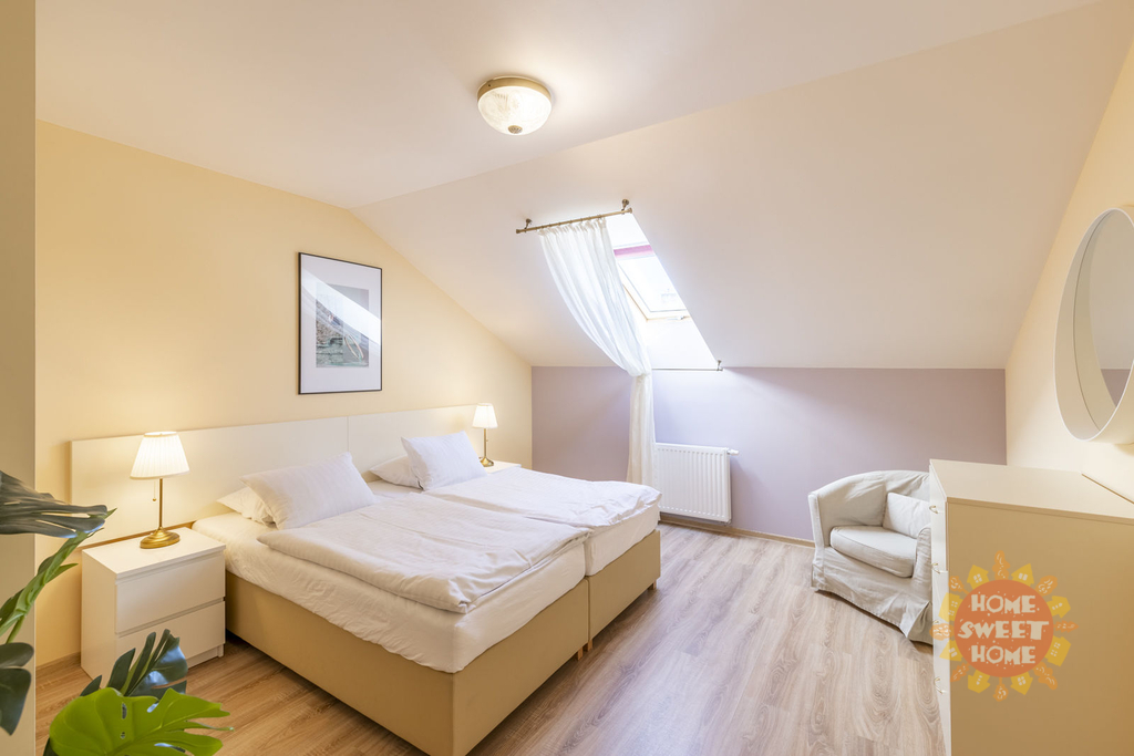 Praha, moderní, podkrovní byt 3+kk k pronájmu,93 m2, ulice Máchova, parkování, Vinohrady