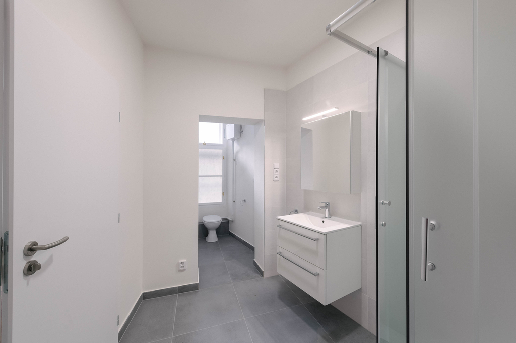 Rádi bychom Vám nabídli k pronájmu kompletně zrekonstruovaný byt o dispozici 2kk, který nabízí klidné bydlení uprostřed centra města. Byt je situován ve druhém patře historického pavlačového domu z konce 19. století v ulici Školská, Praha 1 - Nové Město.