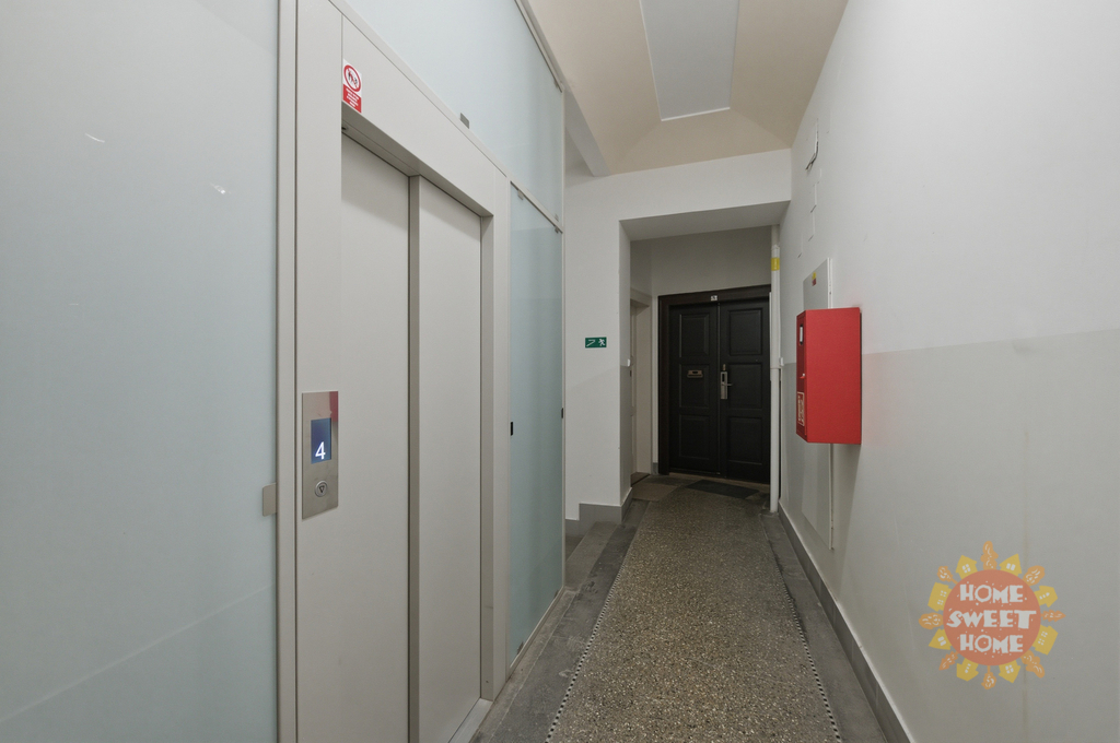 Společná vstupní hala nabízí soukromí a bezpečnost díky možnosti vstupů na klíč do obou apartmánů, stejně jako přístup do praktické úklidové místnosti s možností napojení na vodu. Byt je plně vybavený a připravený k okamžitému užívání. V rámci moderního zabezpečení je celá bytová jednotka chráněna kamerovým bezpečnostním systémem, přičemž v domě jsou oba vstupy zabezpečeny čipy a k dispozici je výtah.