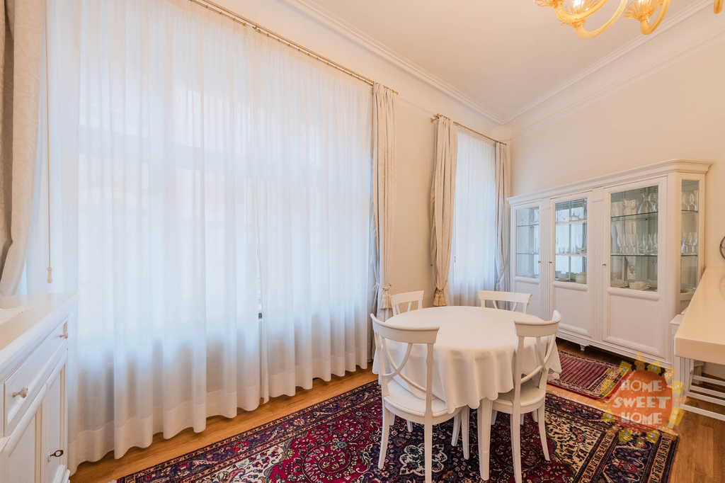 Nabízíme zařízený byt 4+kk k pronájmu o rozloze 120 m2 situovaný ve 2. nadzemním podlaží zrekonstruovaného residenčního domu s výtahem v Praze 1 – Nové Město disponující veškerou občanskou vybaveností a výbornou dopravní dostupností.