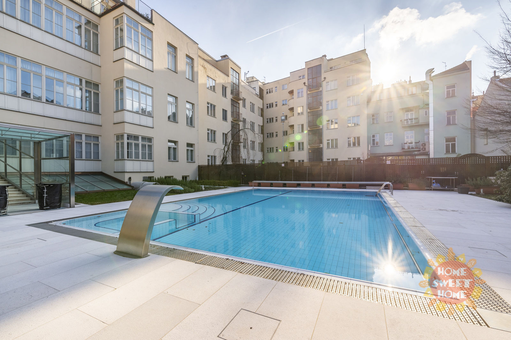 Praha pronájem, luxusní, zařízený byt 2+KK, 72m2, bazén, výtah, podzemní parkování, Vinohrady