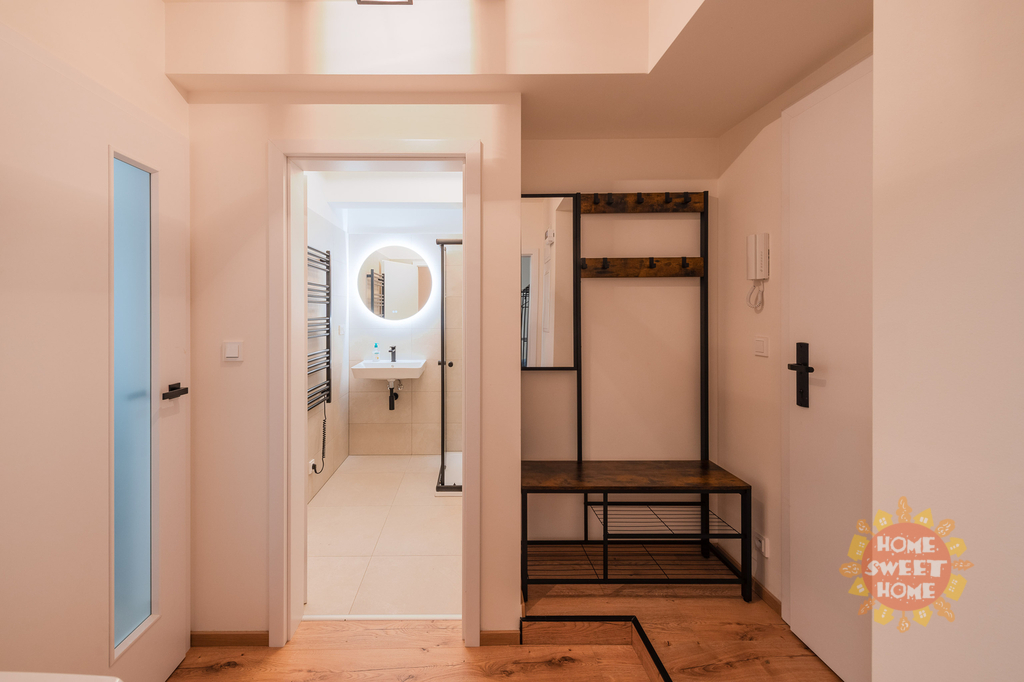 Nabízíme k pronájmu plně zařízený útulný byt 2+kk o rozloze 49 m² v přízemí činžovního domu s příjemnou předzahrádkou v perfektní lokalitě - ulice Ruská, Praha - Vršovice. Tento byt sestává ze vstupní předsíně, ložnice, obytné kuchyně vybavené sedačkou televizí, kuchyňskou linkou s lednicí a mrazákem, indukční varnou deskou, troubou a myčkou. Dále koupelny se sprchovým koutem a toaletou. K dispozici je také pračka.