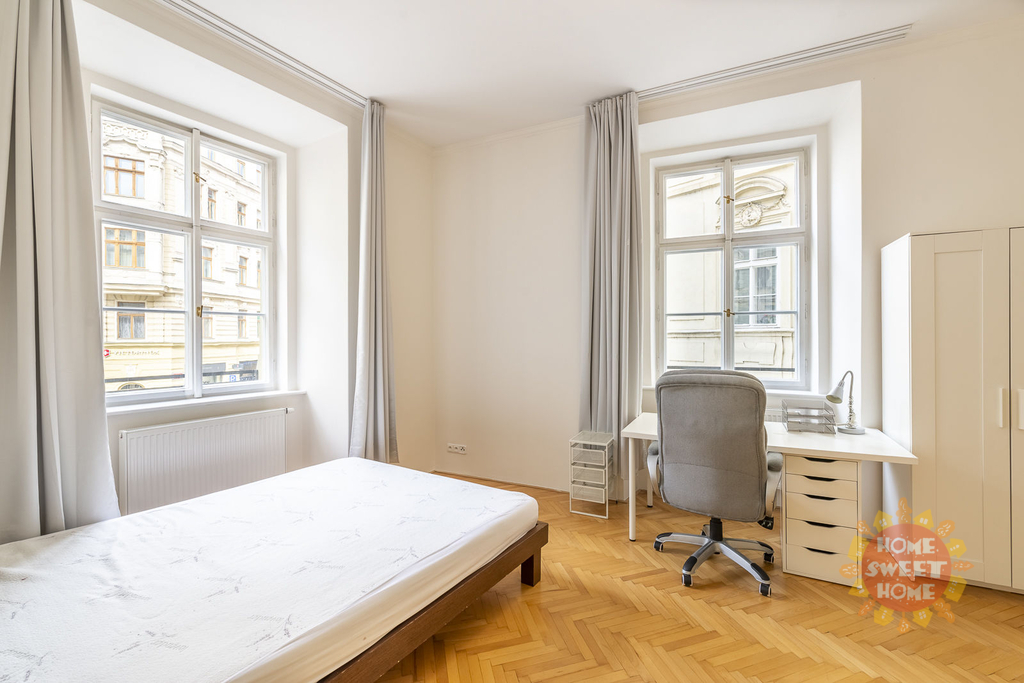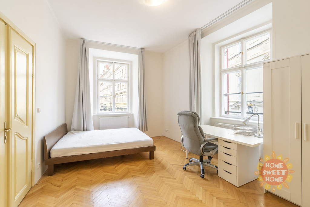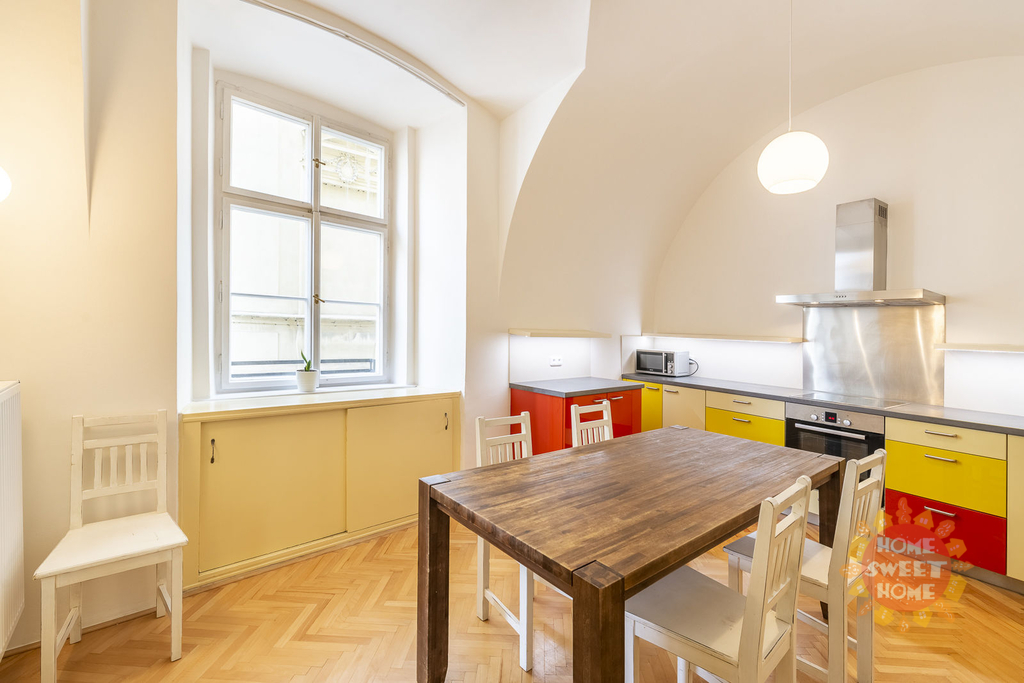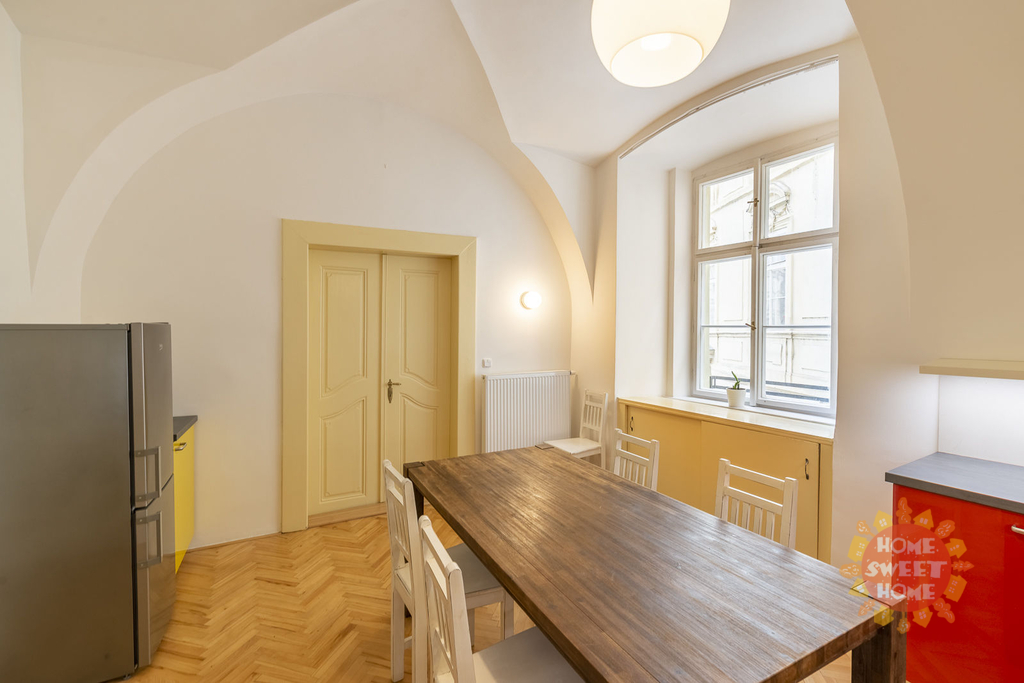 Krásný, prostorný, částečně zařízený byt 3+1 (117 m2) se nachází v druhém nadzemním podlaží cihlového domu v perfektní lokalitě - Týnská ulička, Praha 1 - Staré Město.