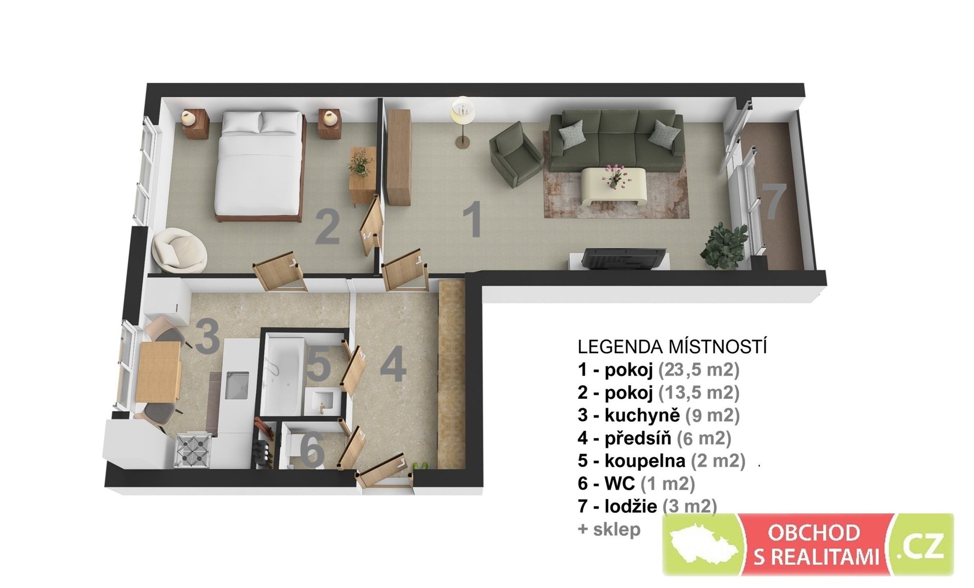 - Dispozice bytu: 2+1