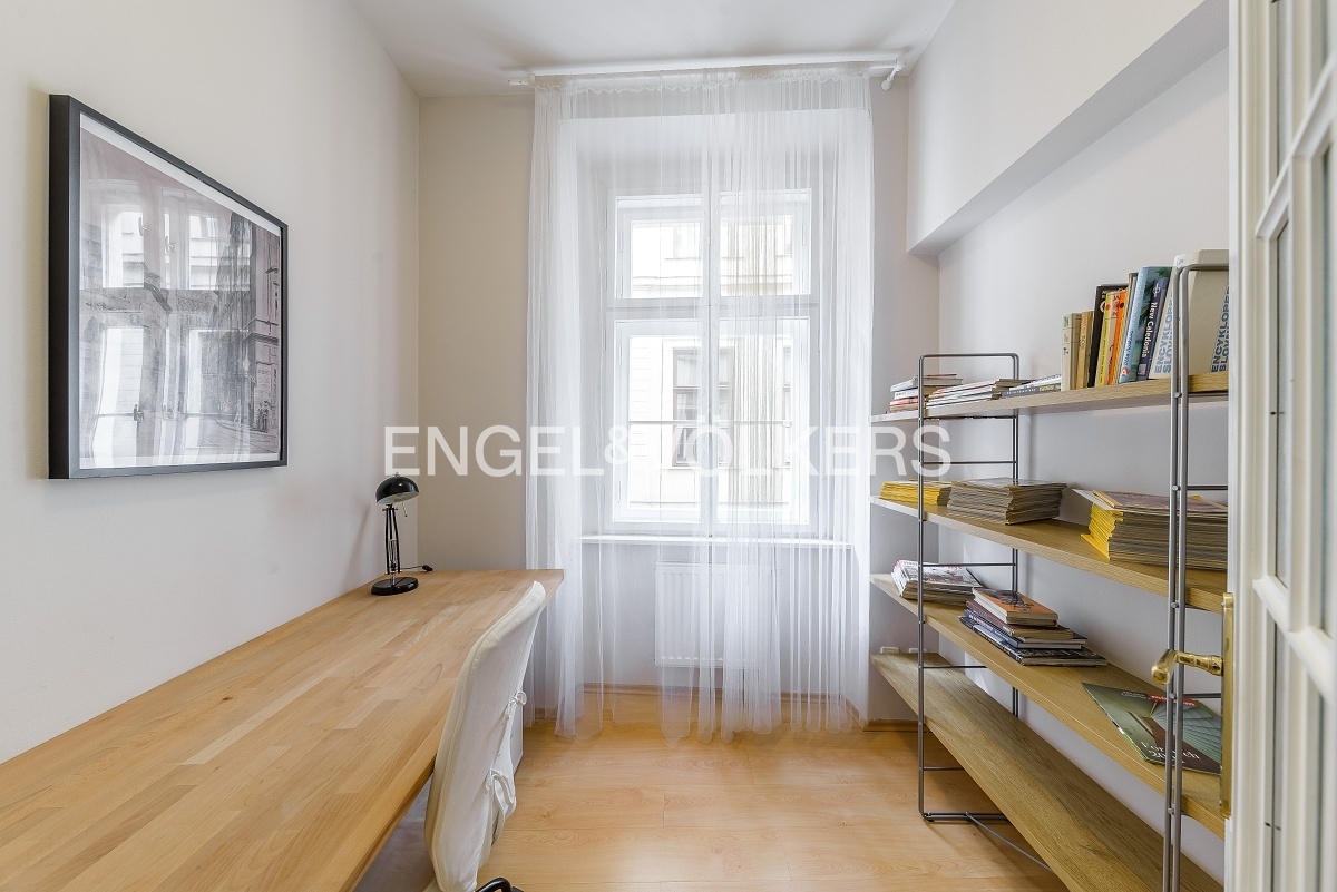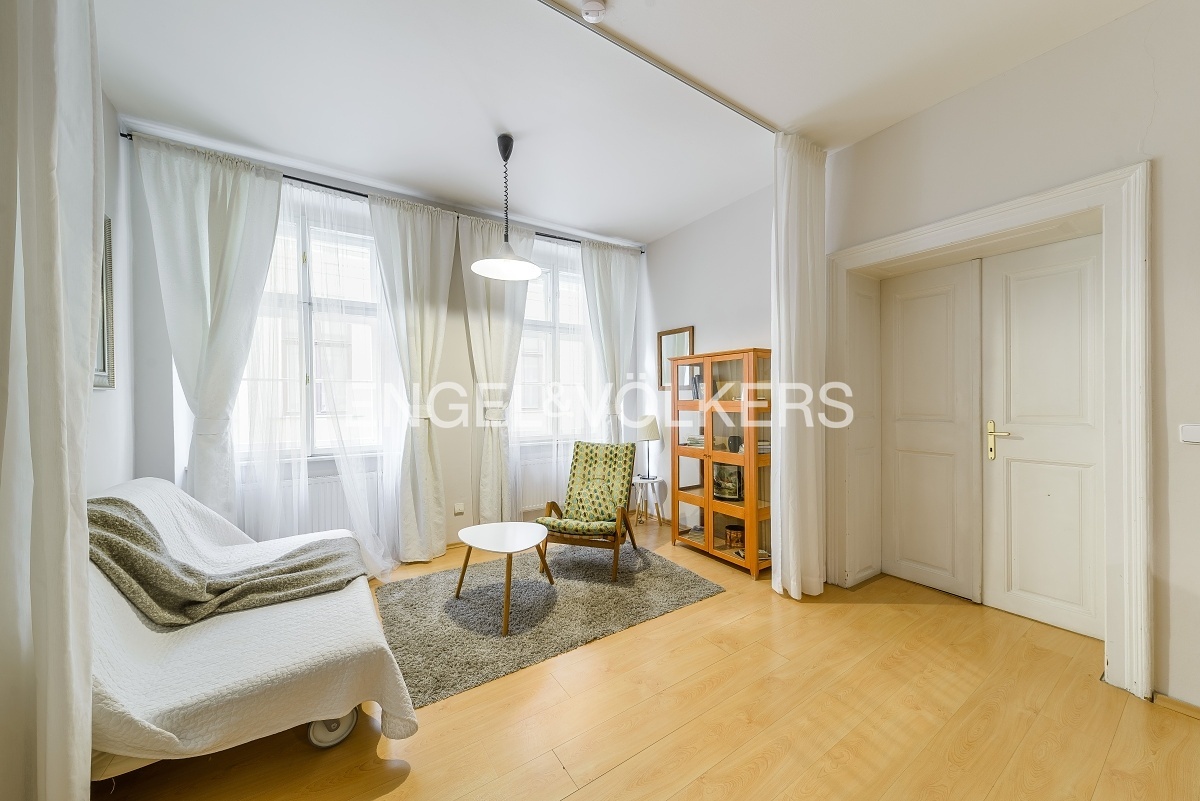 Nabízíme k pronájmu kompletně zařízený byt ve 3. nadzemním podlaží historického domu bez výtahu v samotném centru Prahy, v blízkosti Náměstí Republiky.